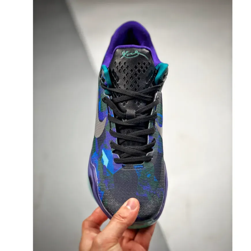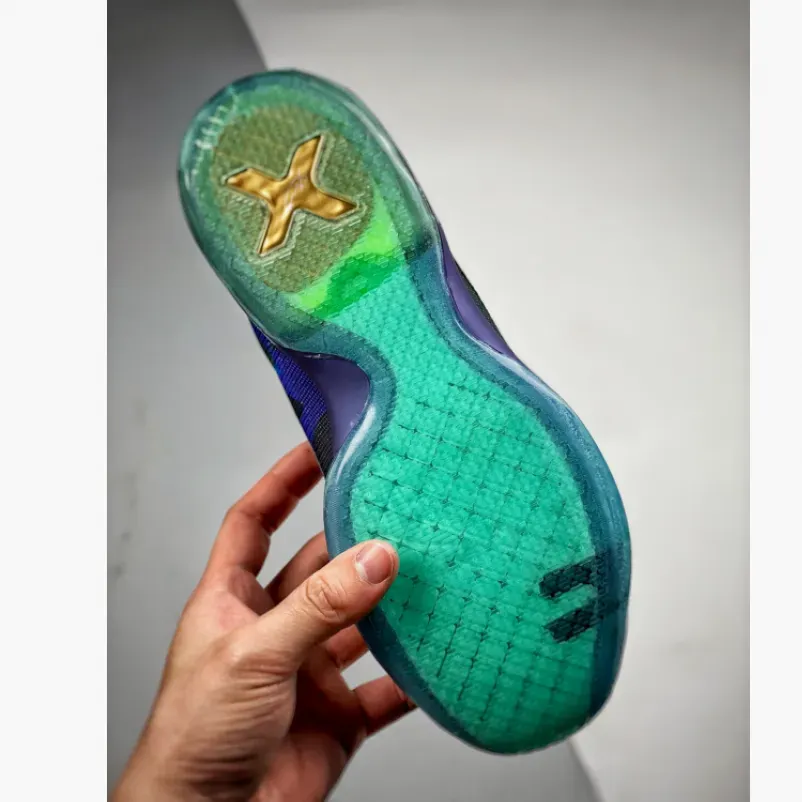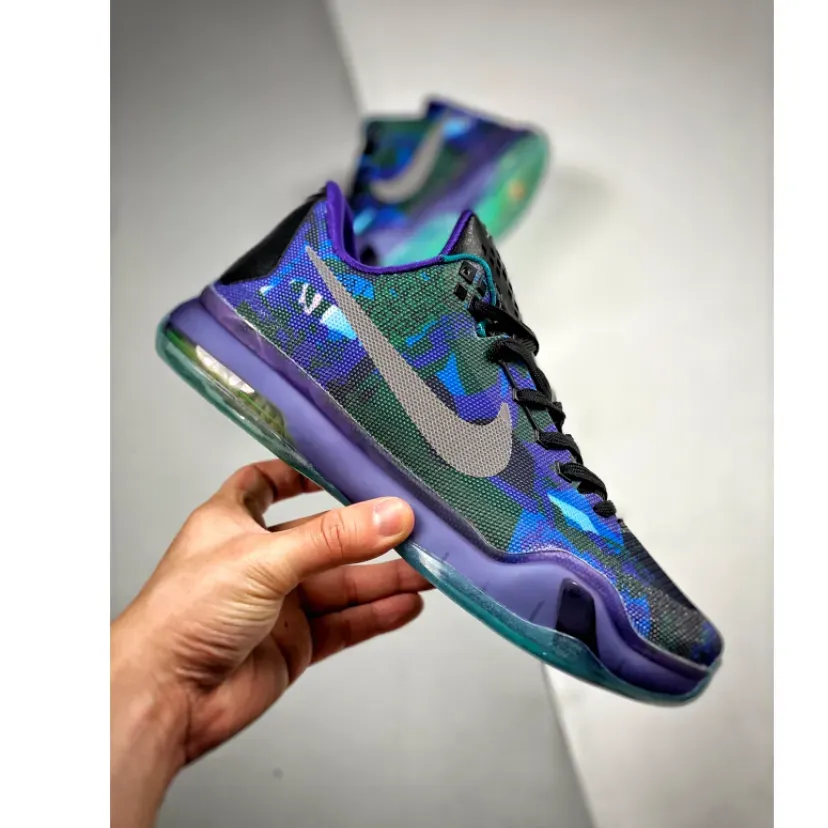 As a follow up to last year’s Nike Kobe 9 EYBL “Peach Jam” colorway, this Nike Kobe 10 is dressed in a mixture of Blue, Teal, and Purple colored tones, having an interesting graphic covering the entire upper.