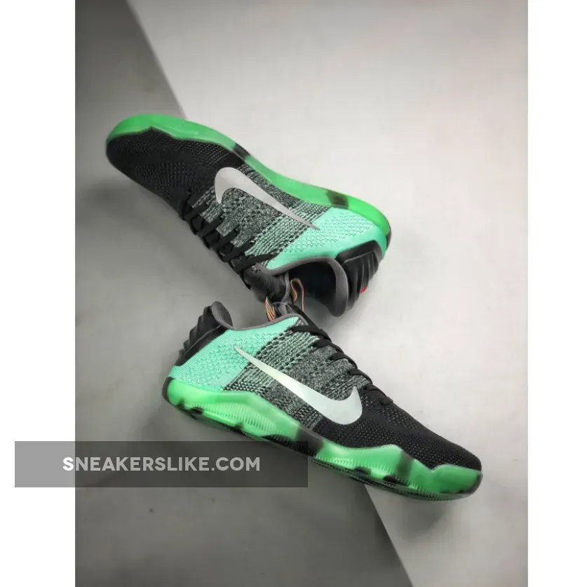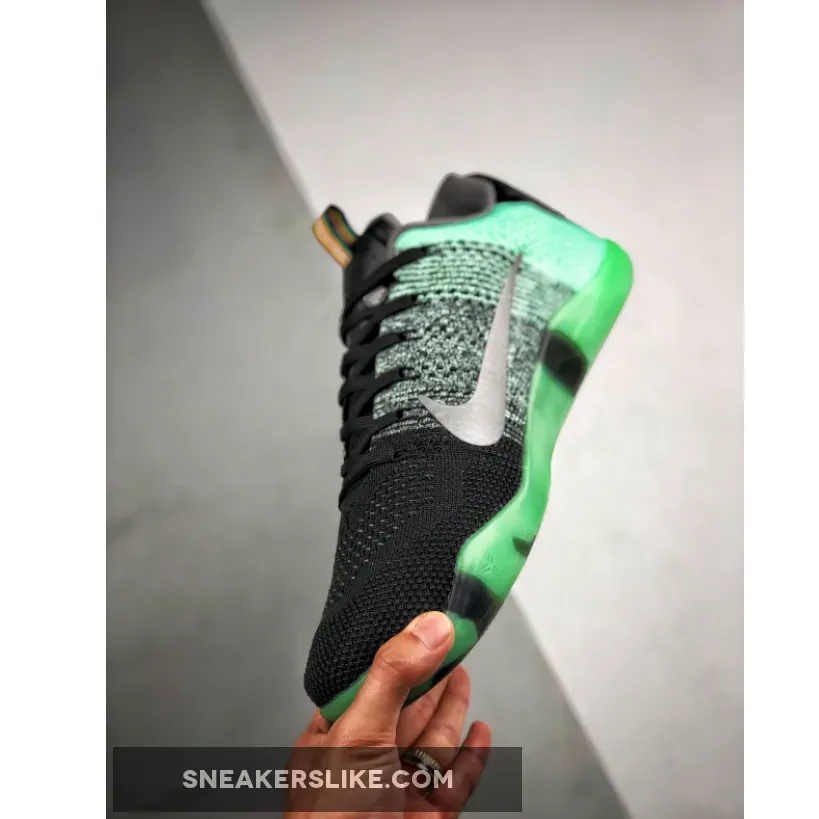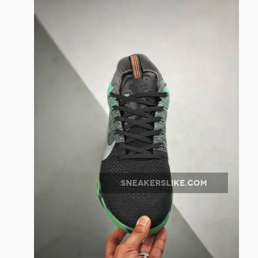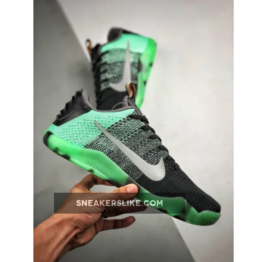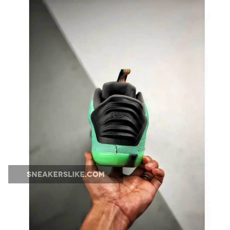 This All-Star edition of the Nike Kobe 11 is dressed in a Green Glow, Black and Persian Violet color scheme. The shoe is a nod to the luminescence of the Northern Lights that features a Black and Green Glow Nike Flyknit upper that sits atop a marbleized rubber outsole.