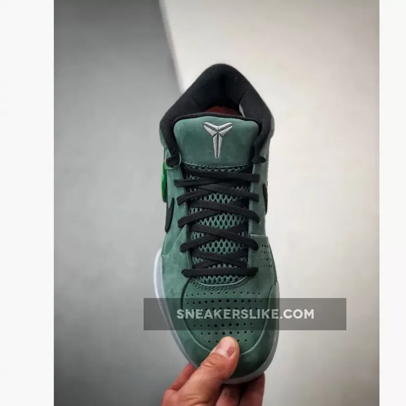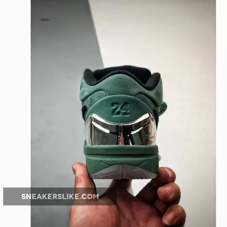 the sneaker is covered in a sea-green shade known as “Bicoastal,” with “Black” and “Metallic Silver” highlights. Its upper dons a suede finish in green at the base and black at the Swooshes. A metallic silver enlivens the design at its heel counter, sporting a green signature detail while a debossed “24” appears at the heel. Silver is also used at the Nike Kobe logo located at the tongue and the colorway’s “Girl Dad” embroidery at the tongue’s interior. Performance-wise, the sneaker is complete with a two-tone Phylon midsole and Zoom Air unit in the heel. Supporting the sneaker, an icy outsole combines with a green midsole to complete the look.