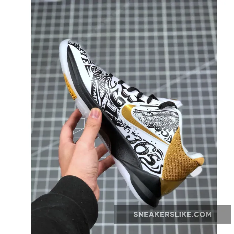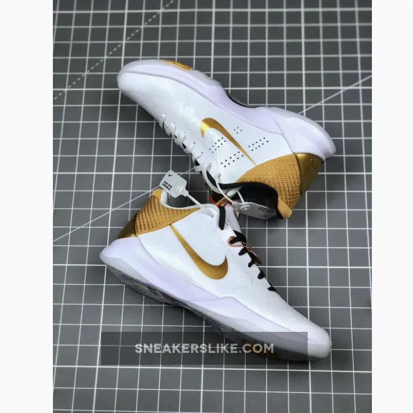 This Nike Kobe 5 Protro features split design on its lateral and medial sides with the “Big Stage Home” detailing displayed on the medial, and the laser etching from the “Parade” pair on the lateral. Contrasting Gold accents and branding completes the design.