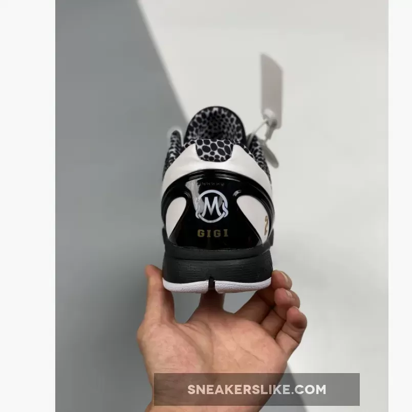 Inside the lateral windows, you’ll find a gilded #2 which represents Gigi’s uniform number for her AAU squad. The rear end’s heel molds swap out the traditional Kobe signature for the Mamba & Mambacita Sports Foundation insignia, and underneath arrives Kobe’s moniker on the left shoe while Gigi’s adorns the right side. Insoles are styled to further honor Gigi with “Mambacita” spell outs, angel wings, a halo and another #2 hit. A majority of the kicks come dressed up with stark black snake scales while notes of white touch down on the Swooshes, Mamba tongue logos and leather back panels.