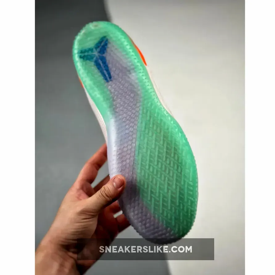 This time around, the colorful array of knits is paired with a clean white forefoot and a matching white Swoosh logo, while an orange heel-cap and a translucent emerald green takes over the thin outsole. There certainly are some HTM vibes to this release, although we haven’t seen a proper collaboration from that triumvirate with the Nike Kobe signature model since the Kobe 10