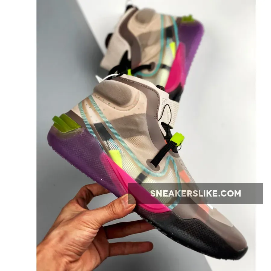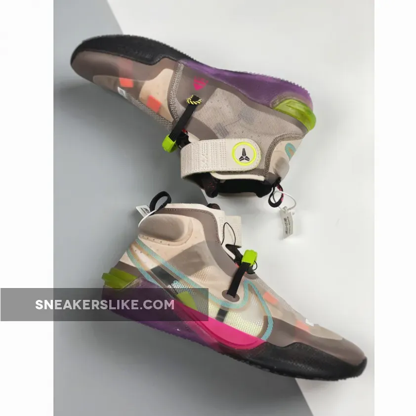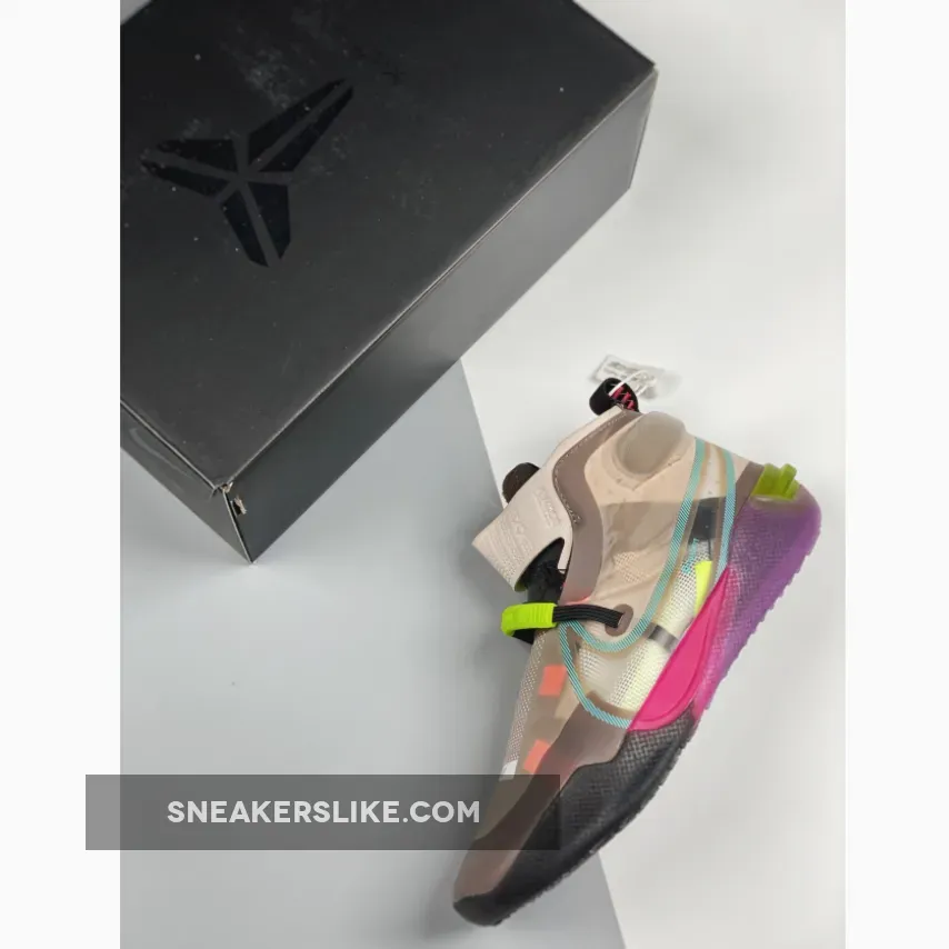 One of the upcoming offerings is this one that resembles Serena Williams’ Off-White “Queen” Blazer from 2018. It features a Tan hue on its transparent upper highlighted with a Blue outlined Swoosh logo on the sides and a gradient Pink and Purple midsole. Volt contrasting accents, Red stitched Kobe tongue logos with Black detailing throughout completes the design.