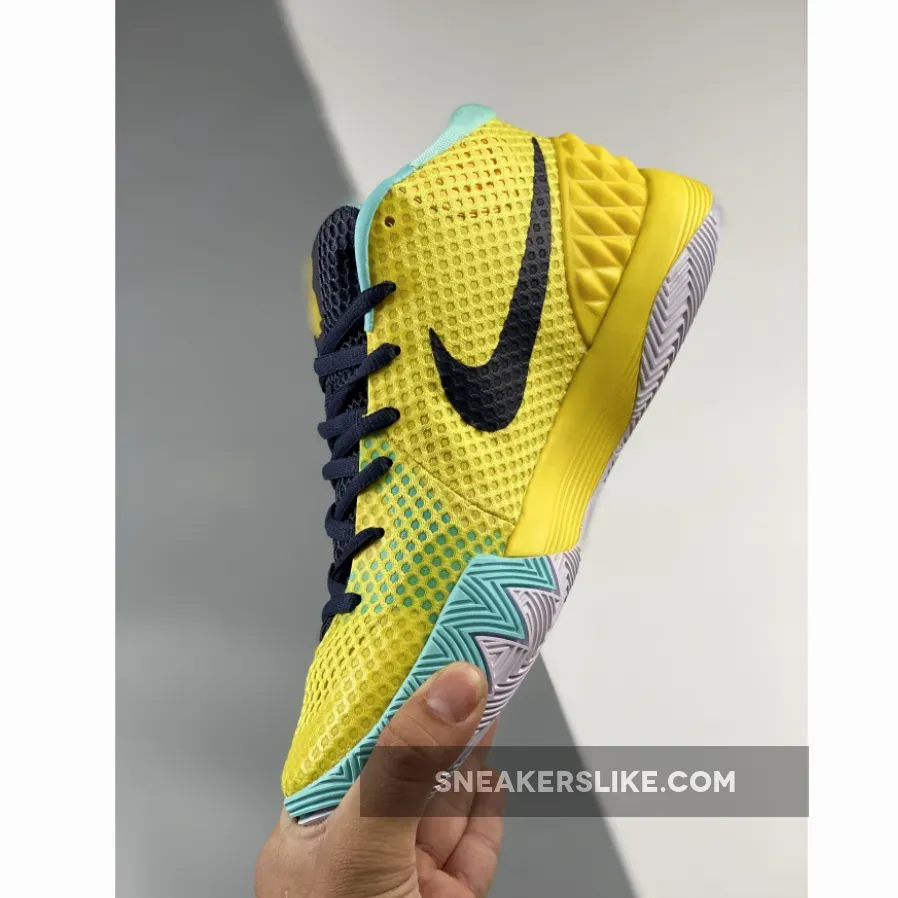The athletic hyperfuse upper is dressed in bright yellow with teal taking on its tongue, Swoosh, and lining; a colorway synonymous with Australia’s national basketball team. The contrasting hues extend onto the sneaker’s frontal portion, highlighted by a triangular pattern. Offset by a white outsole, the dashing version of the Kyrie 1 comes in timely light for the warmer season.