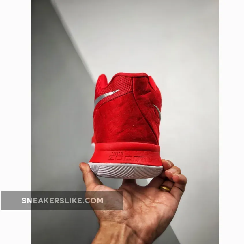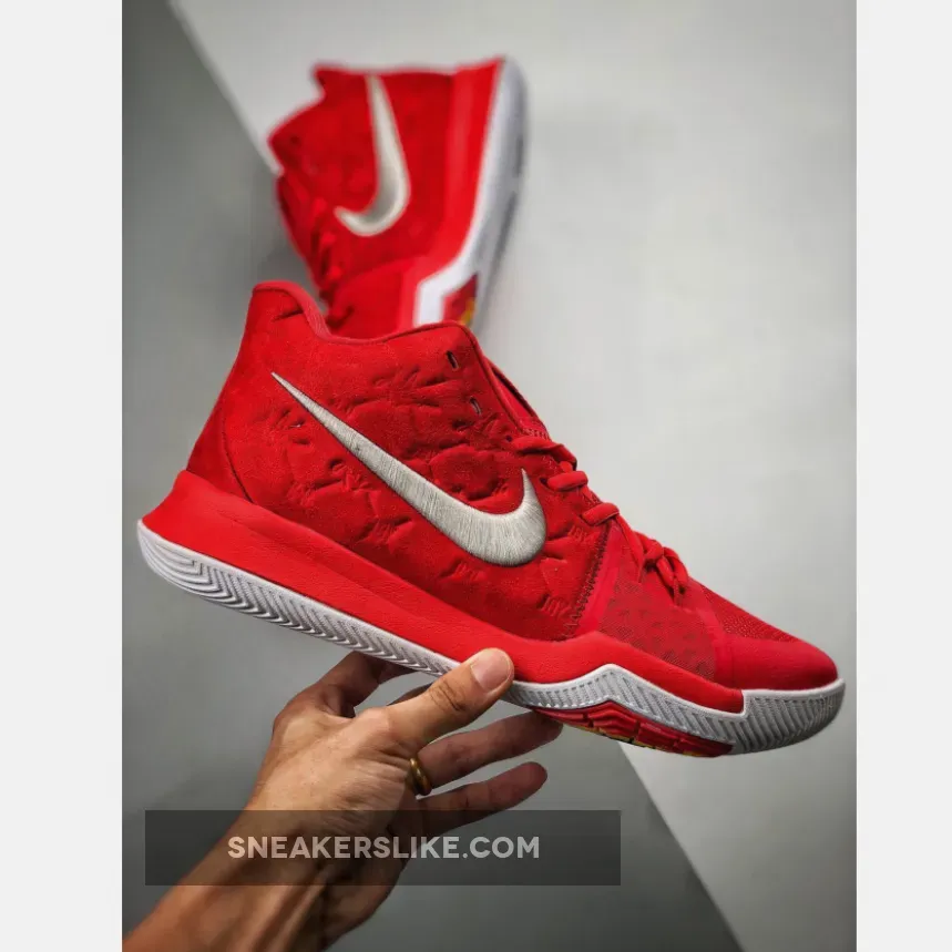 Its University Red upper comes constructed in suede with a quilted pattern revealing Kyrie Irving’s signature embossed throughout. An embroidered Nike Swoosh in Wolf Grey adds for a nice premium touch, while sitting atop a White rubber sole.