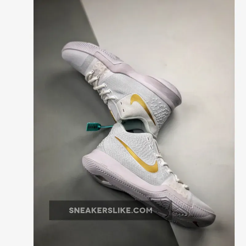 Dressed in a Finals-like color scheme of White and Metallic Gold. This Nike Kyrie 3 features a crisp White upper accented with Metallic Gold on the tongues and Nike Swoosh logos. Adding a bit of contrast are little hits of Infrared on the inner tongue and outsole.