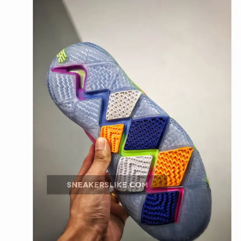 “I’m really impressed with the Kyrie 4 ‘Confetti’! The multi-colored design is so unique and eye-catching – it’s definitely a conversation starter. I love the scribble writing on the heel and the translucent outsole adds a cool touch. Overall, it’s a great looking shoe that’s perfect for casual wear.”