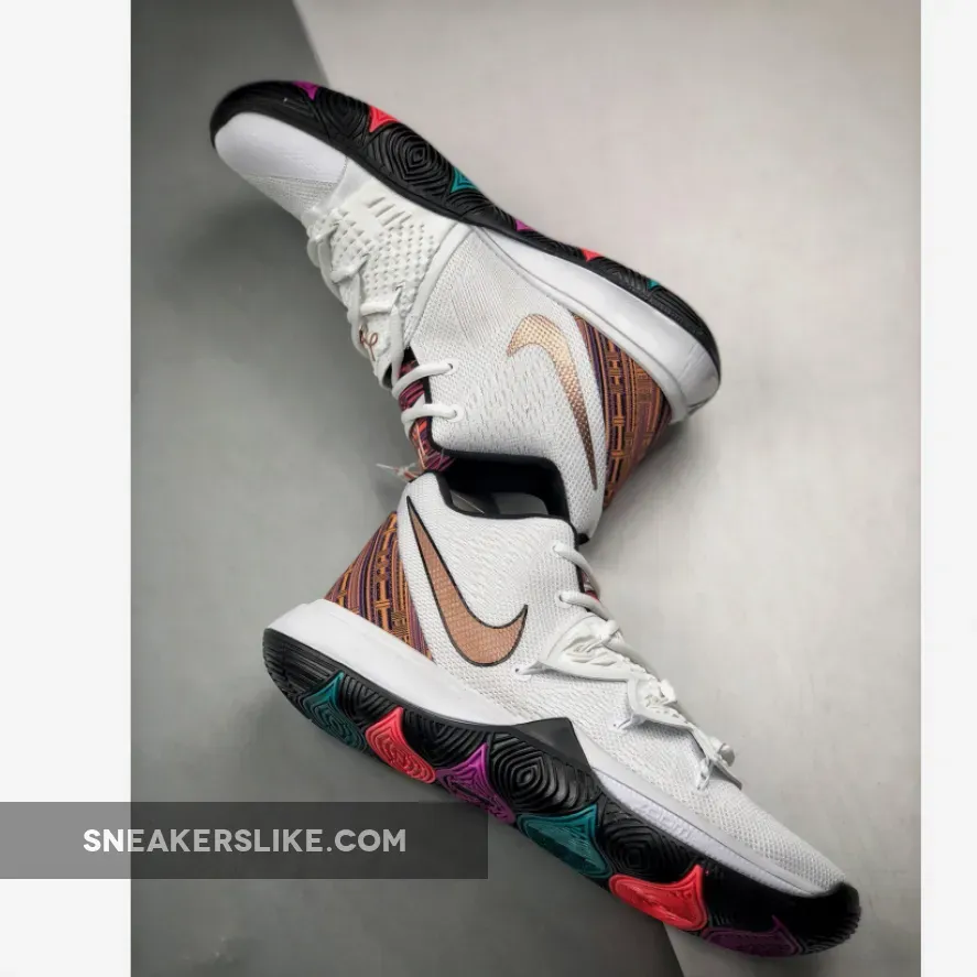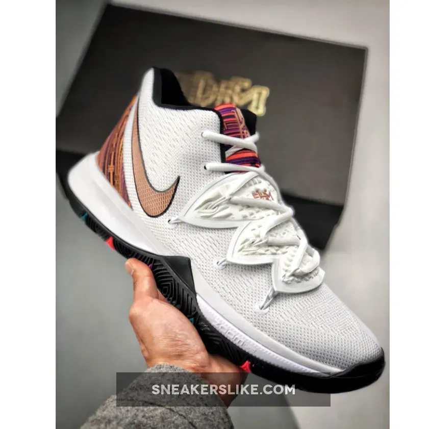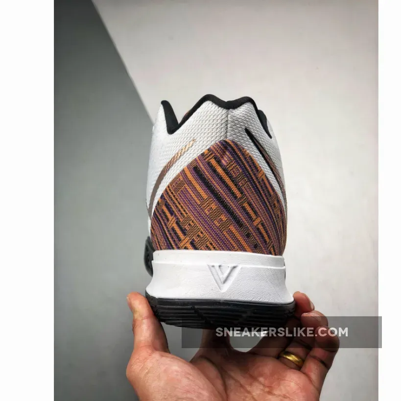 this Nike Kyrie 5 comes dressed in a White and Metallic Red Bronze color theme. This pair is a tribute to Kenyan culture and features a vibrant embossed graphic on the Nike Swoosh, around the heel and tongue. Nike Kyrie 5 BHM Color: White/Metallic Red Bronze Release Date: February 1, 2019 Style Number: BQ6237-100 Price: $130