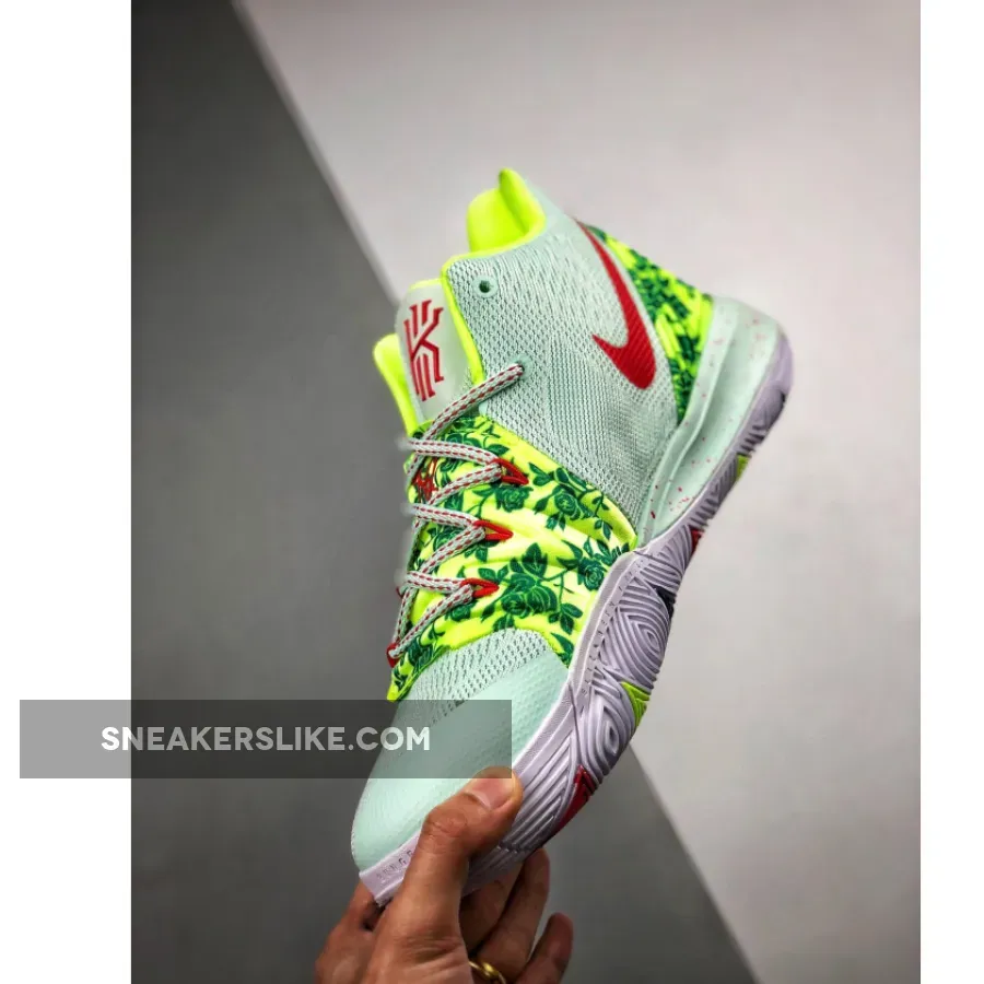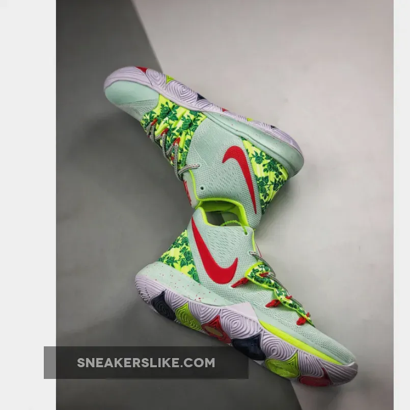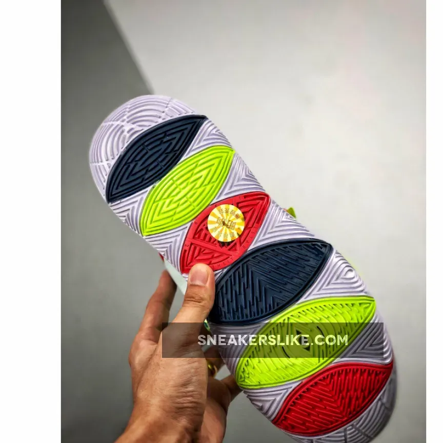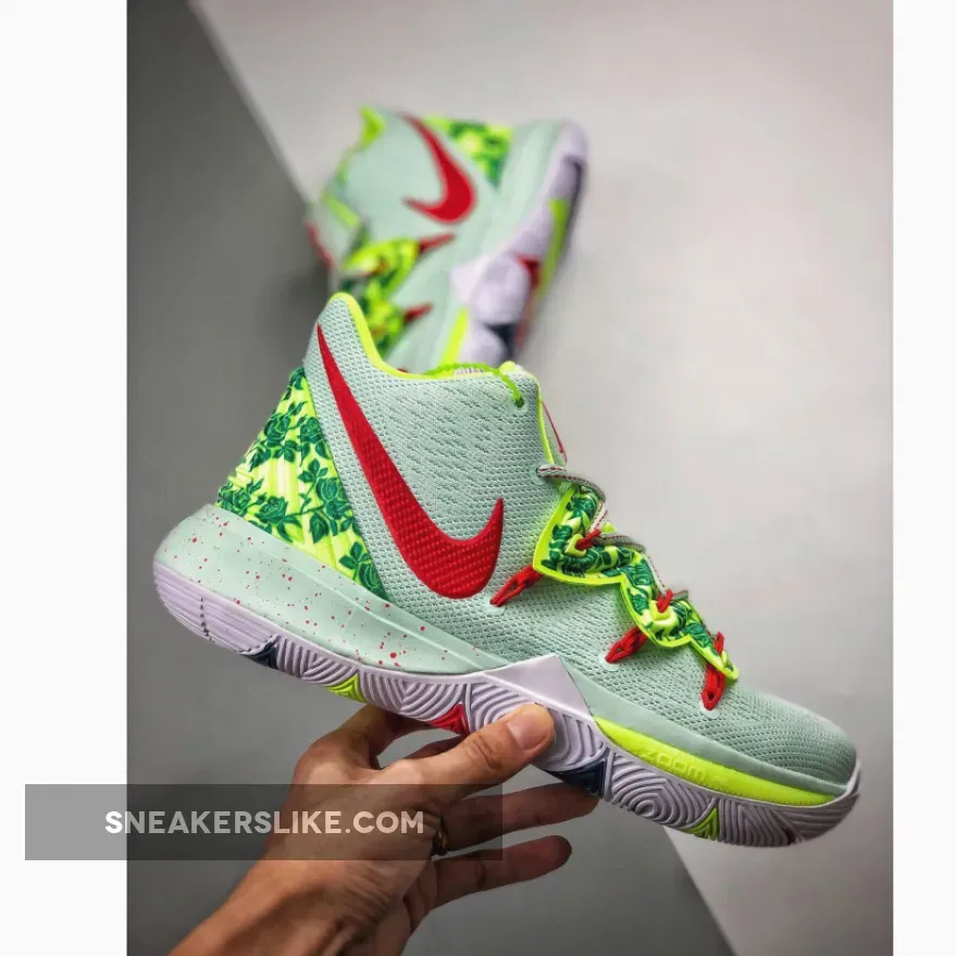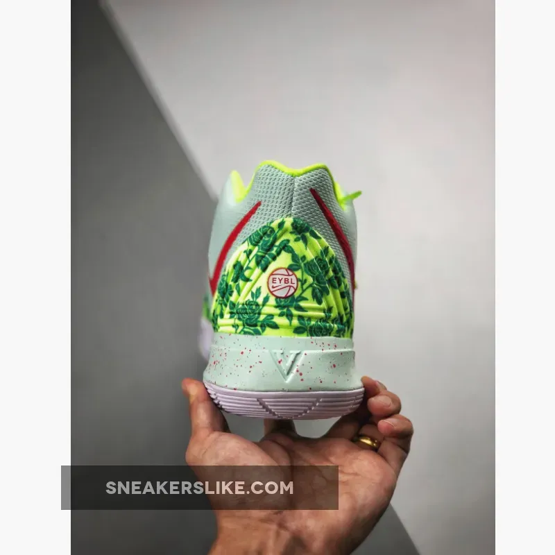 “I’m loving my new Nike Kyrie 5 ‘EYBL’! The mint green upper is so fresh and unique. I appreciate the pops of red and neon green that add some flair. The flower-like heel print adds a touch of elegance. Overall, the design is on point. Comfortable too! 10/10 would recommend.”