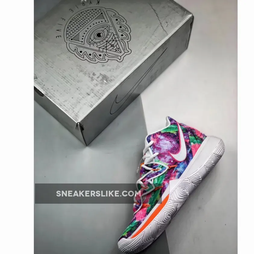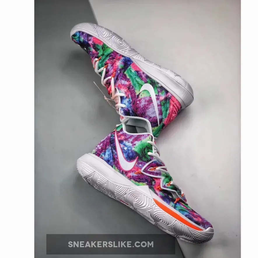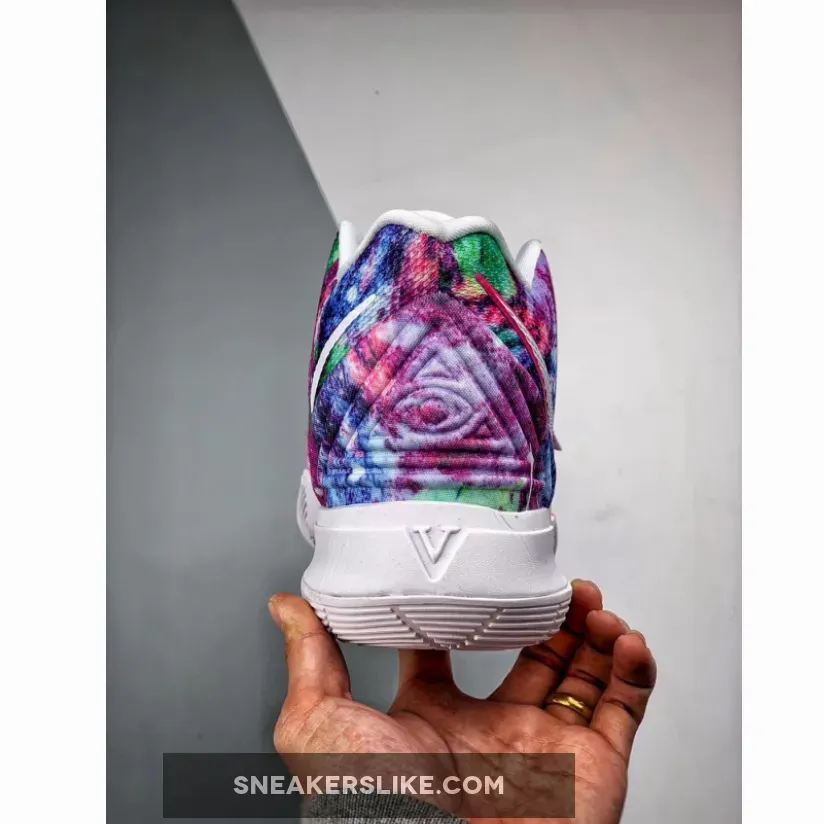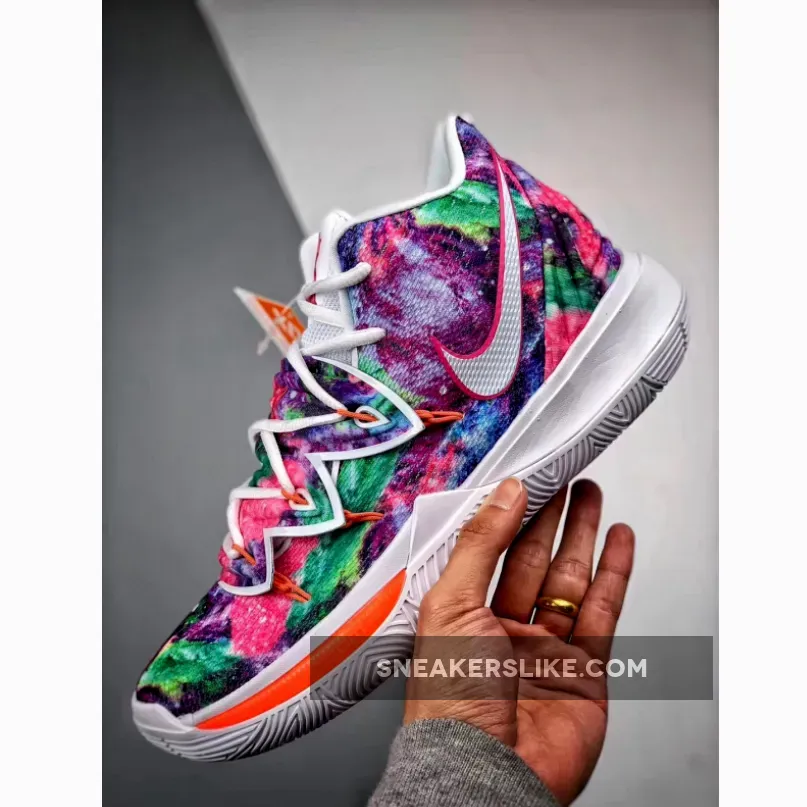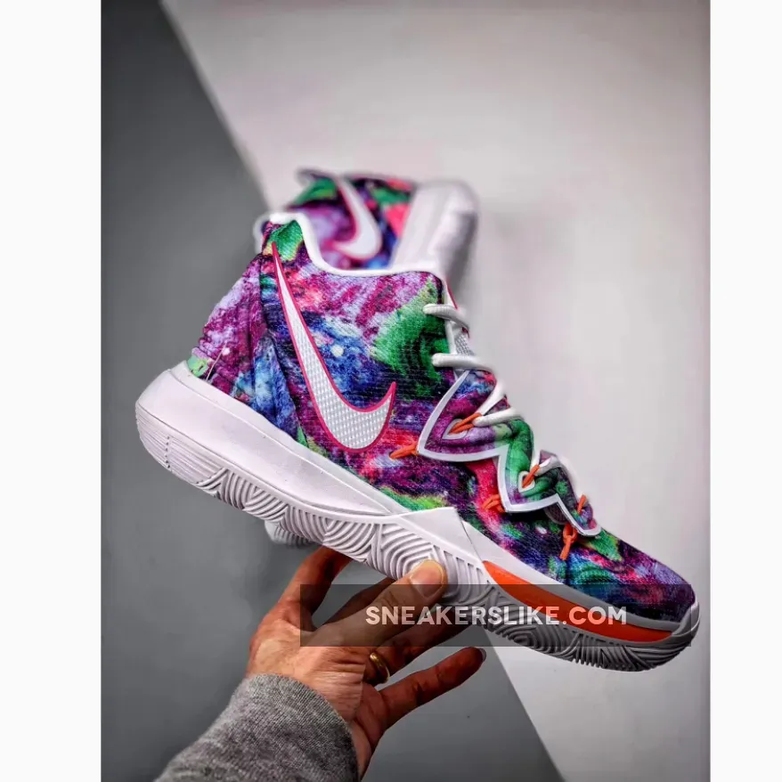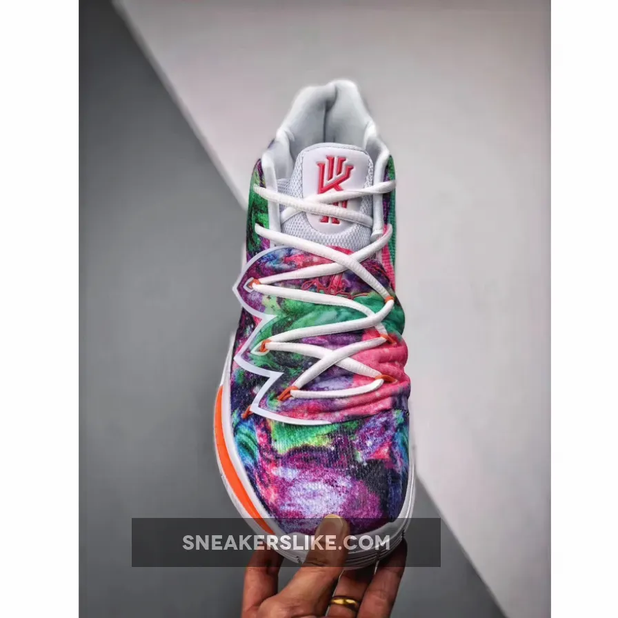 This iteration of the Nike Kyrie 5 features a mix of dyed colors on the upper while having White on the lining, tongue, and sole.
