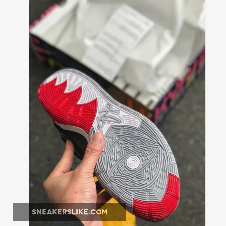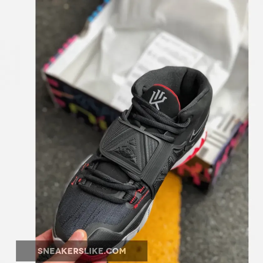 This Nike Kyrie 6 comes with Black mesh on the upper while nubuck covers the heels. Red then lands heel and small stitching on the eyelet.