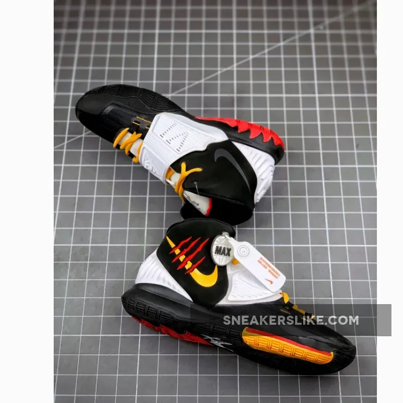 This “Bruce Lee” offering of the Nike Kyrie 6 sports the classic color combination of Red, Black, and Yellow. It features a Red-based upper paired with Black detailing and Yellow contrasting accents throughout.