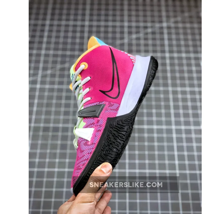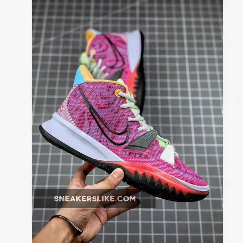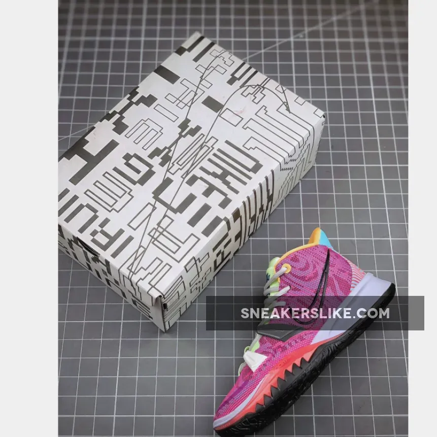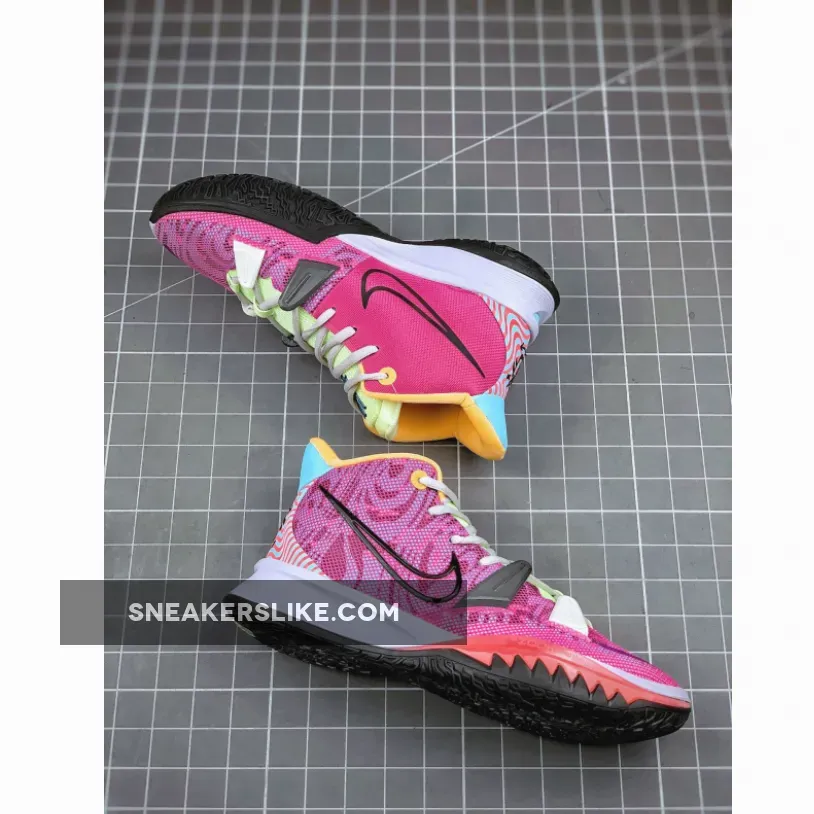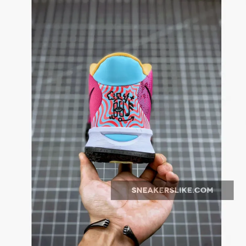 This Hendrix-themed Kyrie 7 features a psychedelic pattern on the upper paired with bright pastel tones covering the tongue, collar and heel. Black outlined Swooshes on the sides with musical and street art motifs on the heels completes the design.