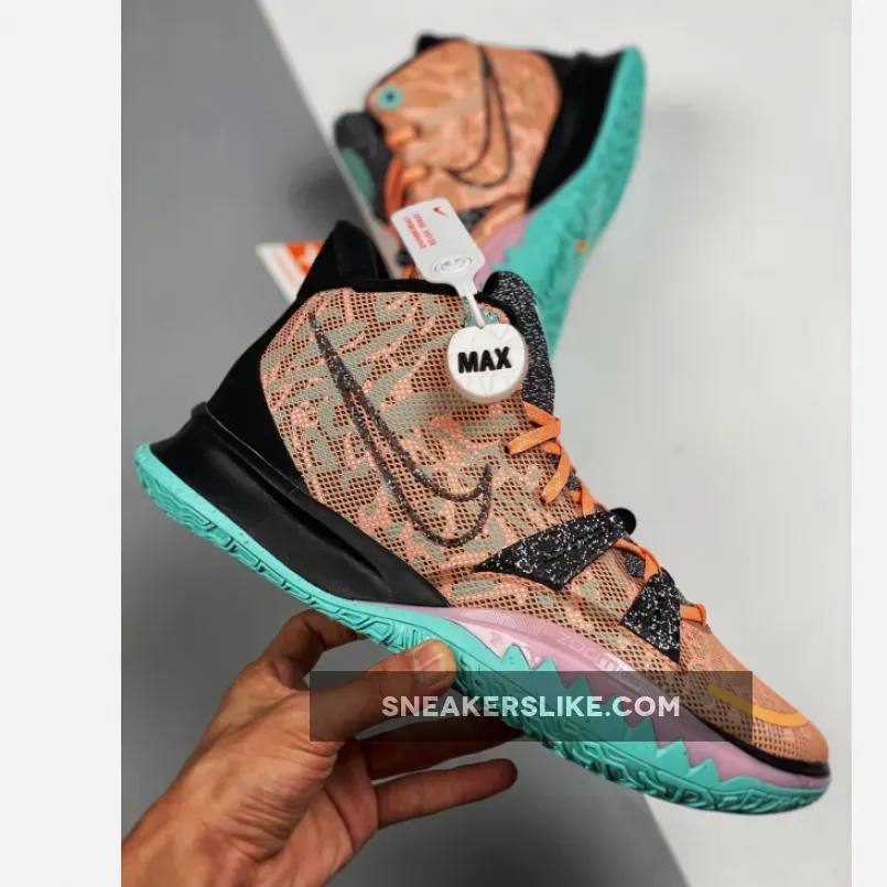 “Really impressed with my new Nike Kyrie 7! The orange and turquoise combo is so fresh ??. Love the plant-inspired graphics too ?. Comfortable and lightweight, perfect for my morning pickup games ?. Only gripe is that it’s a bit pricey ?. Overall, 4.5/5 stars ⭐️”