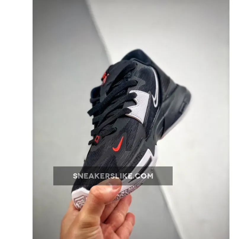 Seen here is a black, white, and chile red concoction – a straightforward approach to one of the most common basketball shoe colorways ever. The blocking of the black/white are quite high-contrast as the white accentuates the natural design lines of the silhouette, while hits of Chile Red mark the minute details that signify Kyrie’s personal life. A date of April 12th, 2021 appears inside the tongue flap, which we presume is an important date in KAI’s timeline.