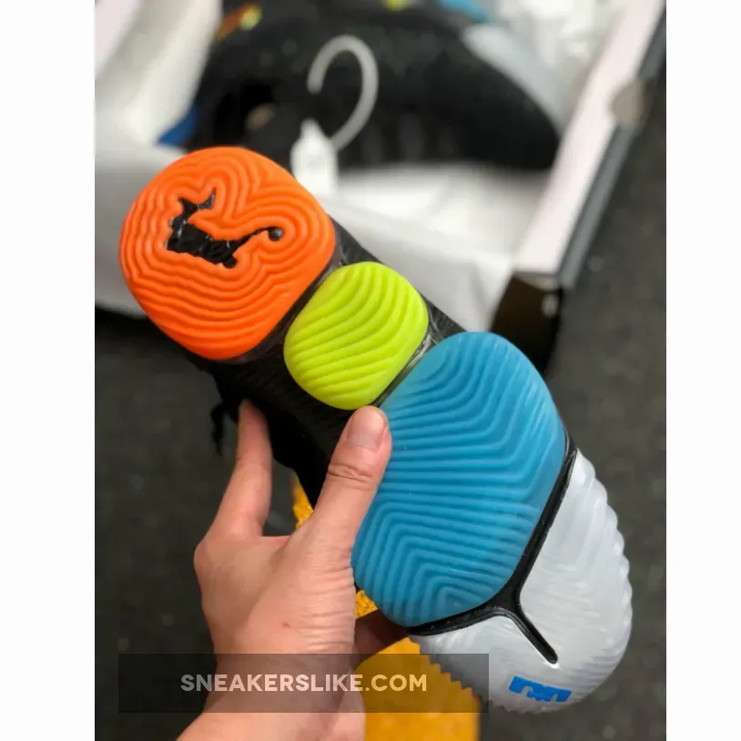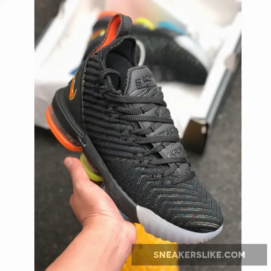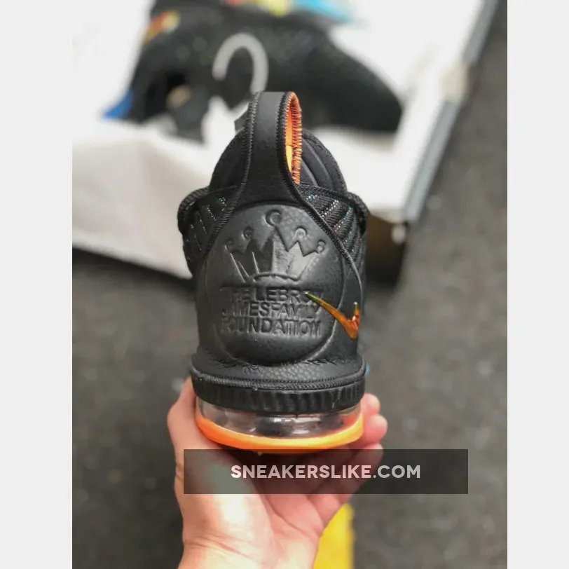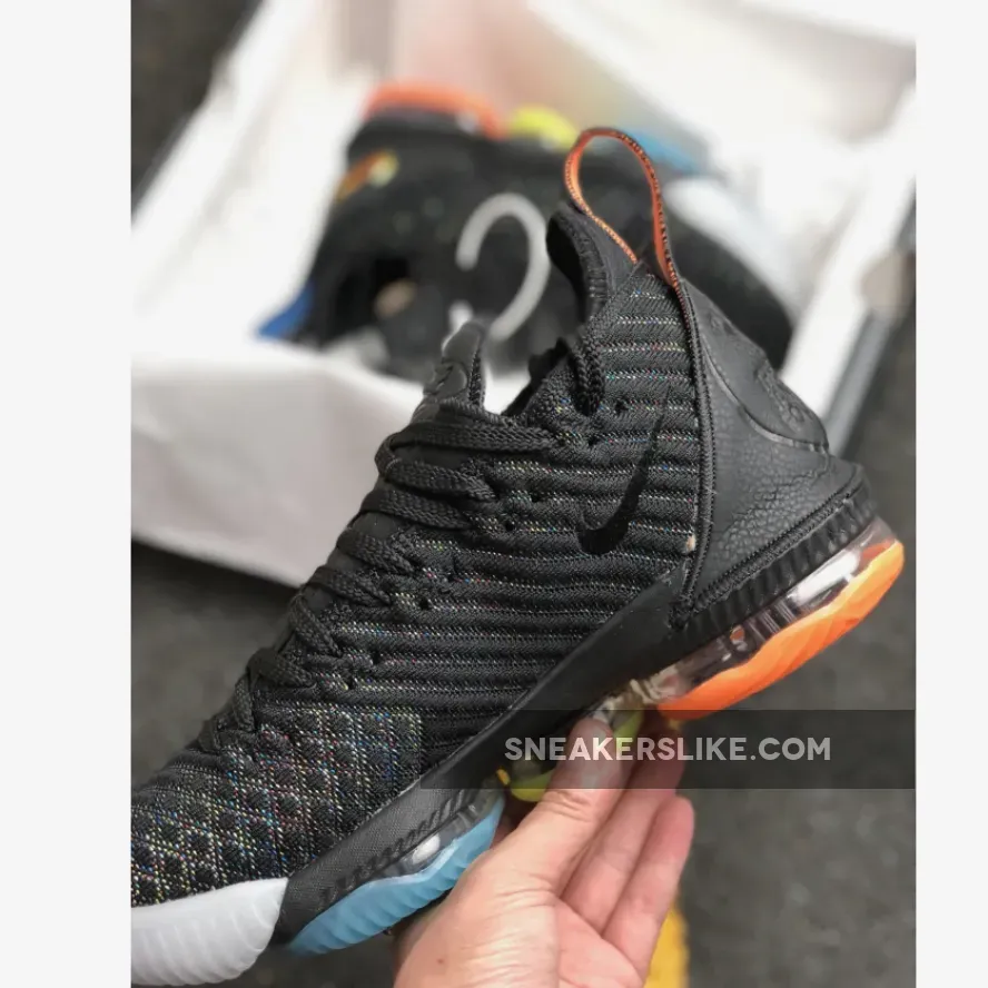 This Nike LeBron 16 is inspired by his children and the I Promise school that opened up earlier this summer in Akron, OH. The shoe features a Black Battleknit 2. Finishing off the theme is a “WE ARE FAMILY” message on the leather heel wrap.
