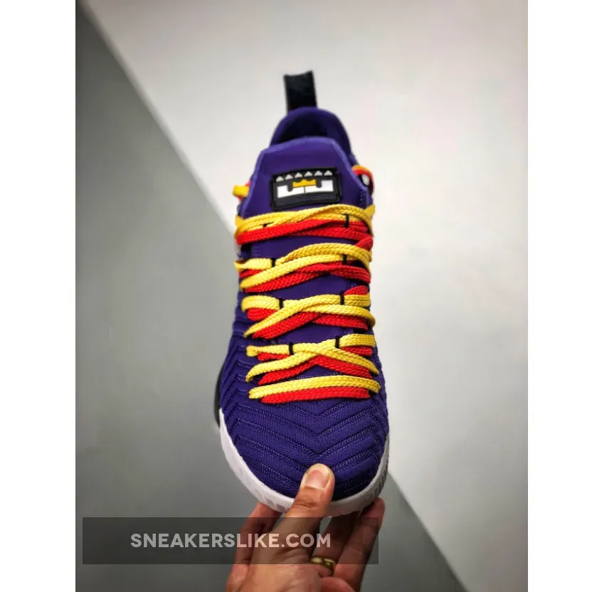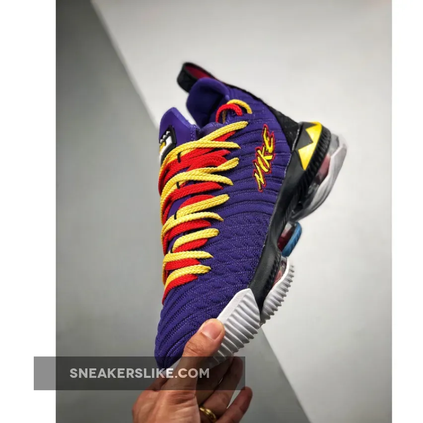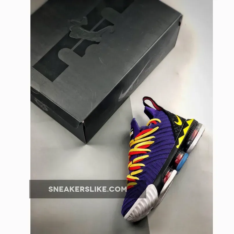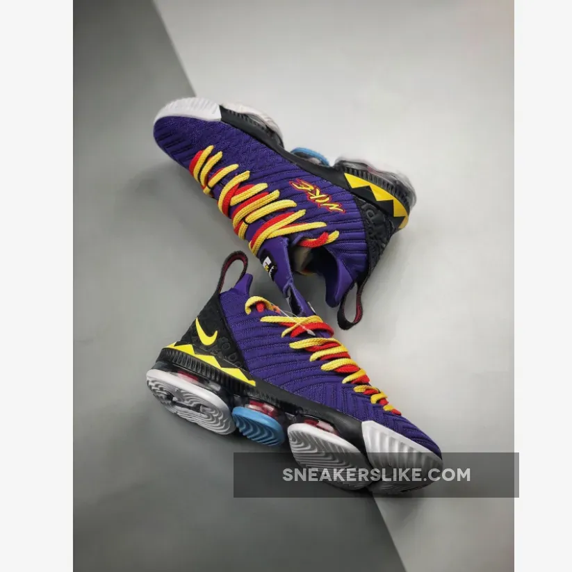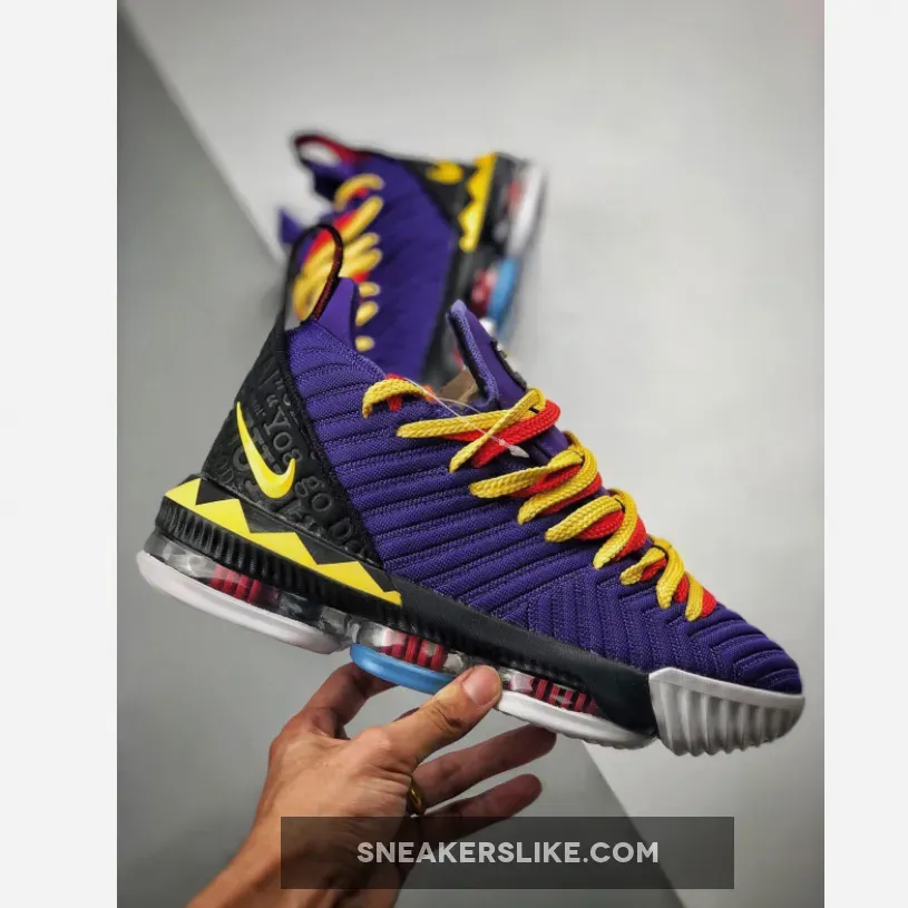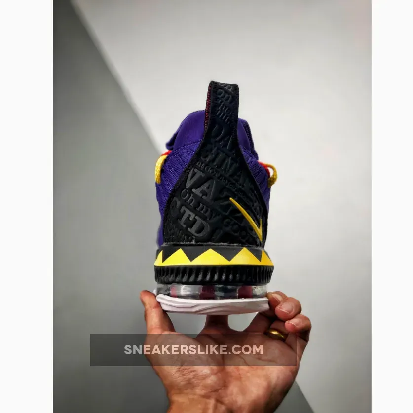 Dressed in a Court Purple and Tour Yellow color scheme that nods to the shows fifth season dvd cover and poster. This Nike LeBron 16 features a Purple Battleknit upper with Crimson and Yellow accents. A Black heel with a triangular design wrapping the lower heel and tongues nods to the iconic Martin logo as does the bold “Nike” branding on the ankle. Finishing off the theme are notable catch phrases debossed into the heel along with themed branded insoles.