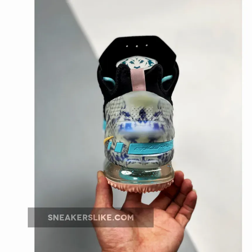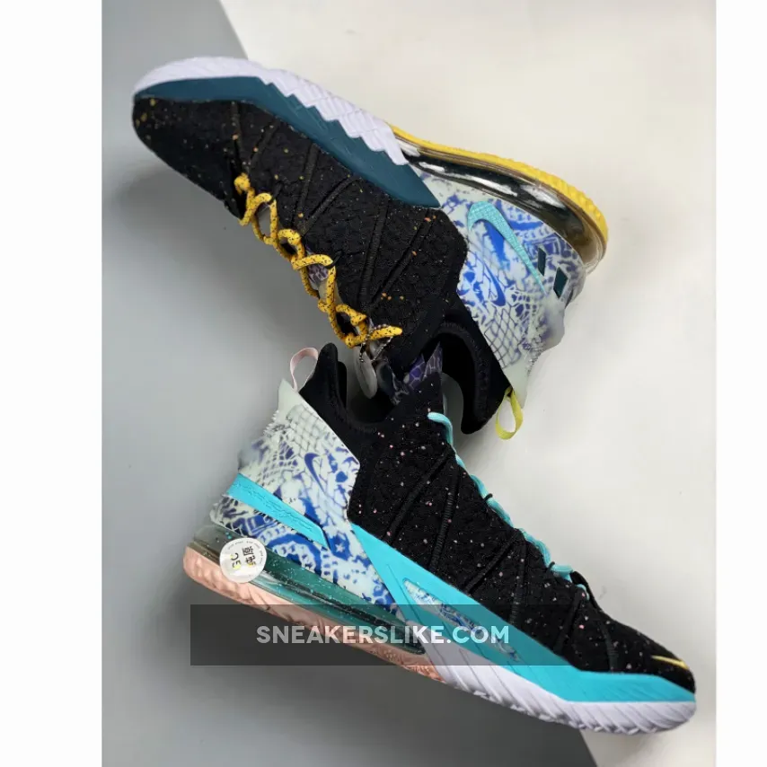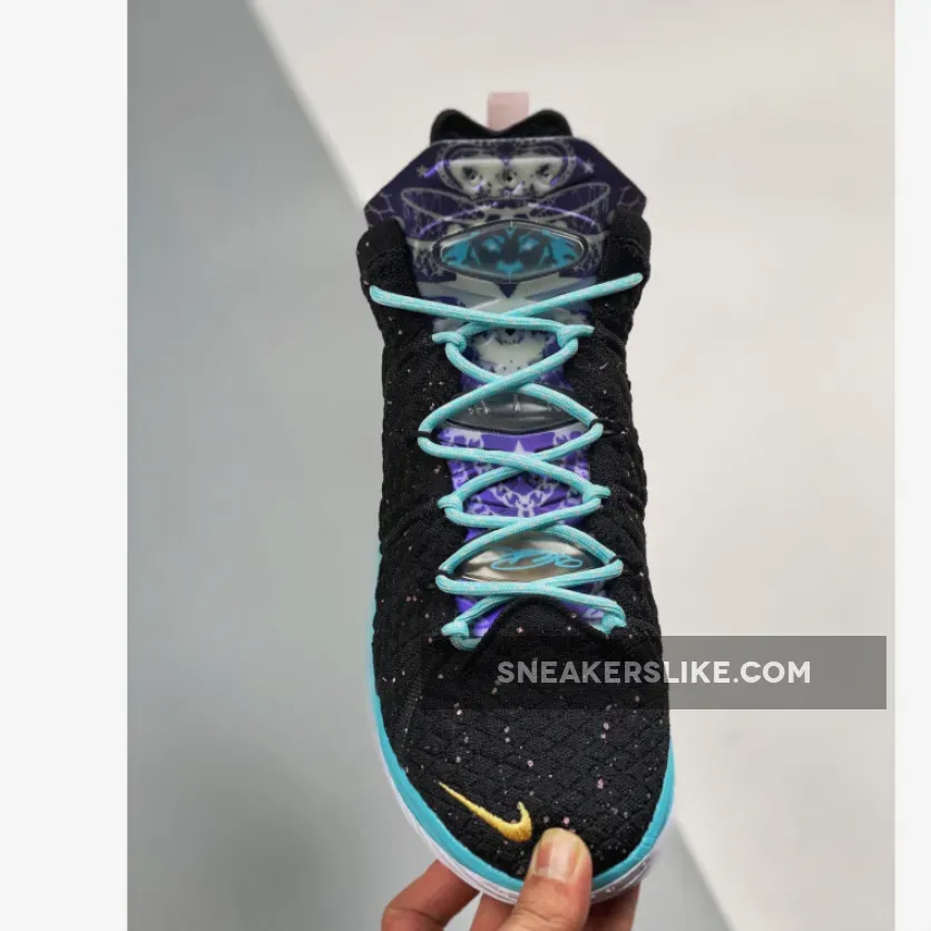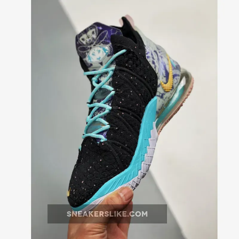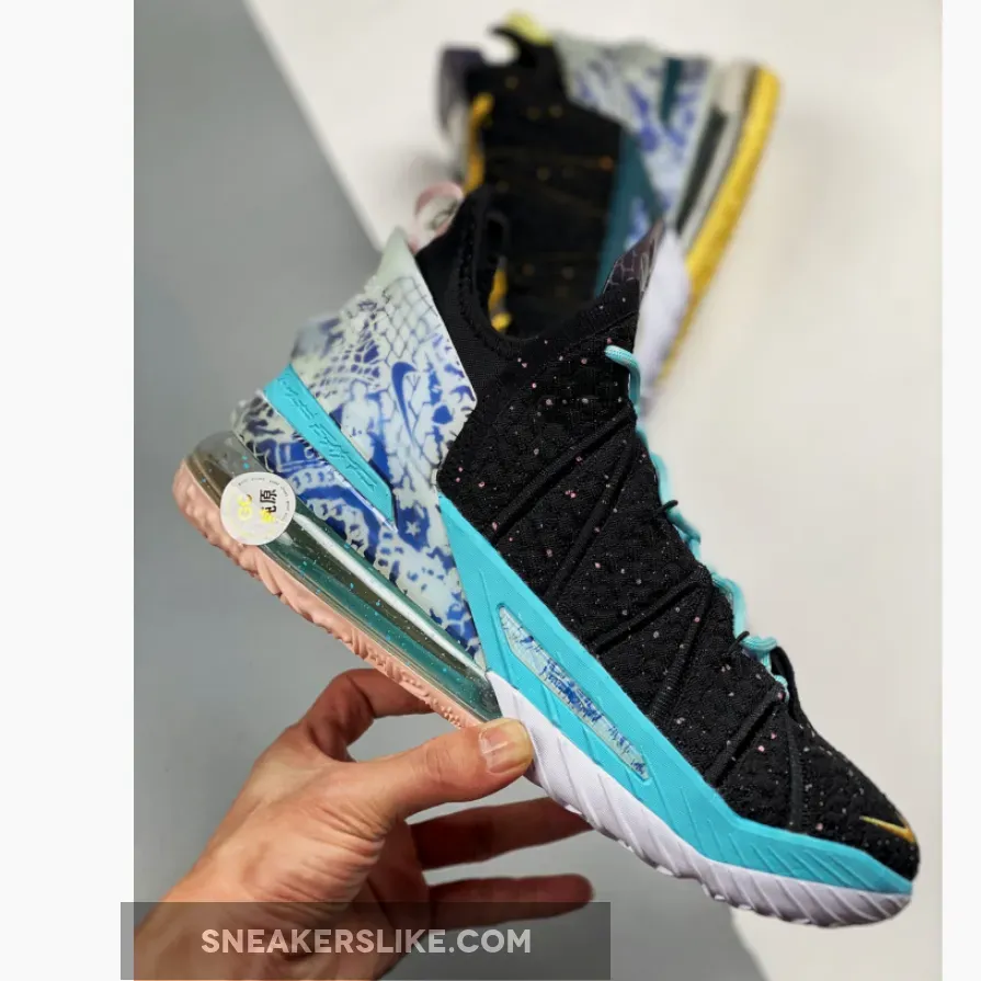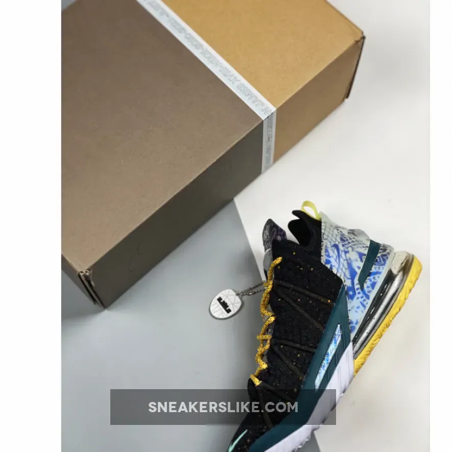 The reflection theme is expressed through slightly altered colors on the left and right shoe, with variations on the sole, logos, heel tab and laces. Iconography representing his 17 seasons to date creates unique collages that appear as graphics on the heel, tongue and sockliner. With a lightweight Black Knitposite 2.0 upper, durable molded heel clip, new Air system in the tongue and a full-length Air Zoom unit combined with a Max AIR unit in the heel, this game-changing design elevates the LeBron signature line to the next level.