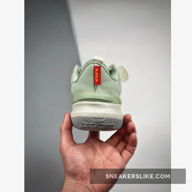 This offering of the LeBron Ambassador 13 comes in an “Empire Jade” color blocking. It features a Mint Green upper constructed in a mix of mesh, synthetic and leather materials.