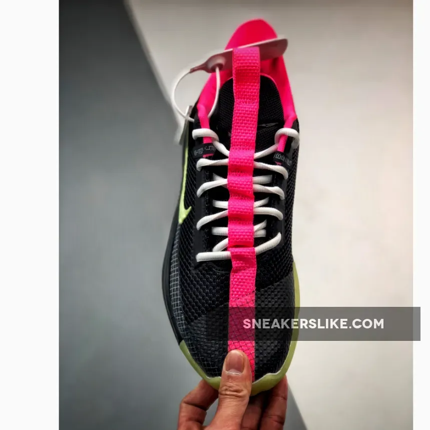 While this issue lacks an actual glow-in-the-dark sole, it achieves the effect thanks to the translucent green. The hot pink covers the inner lining, tongue back, and tongue ribbon, while a sharp black floods the rest of the upper.
