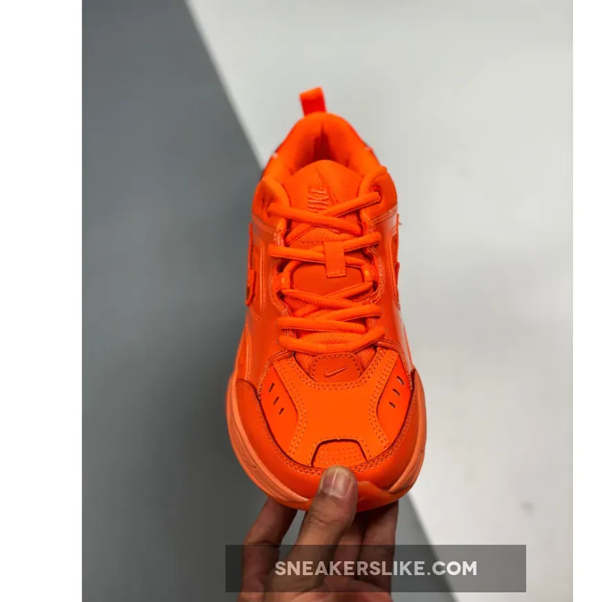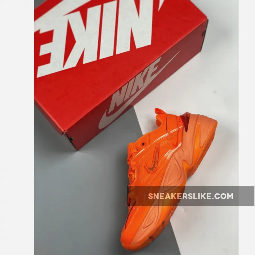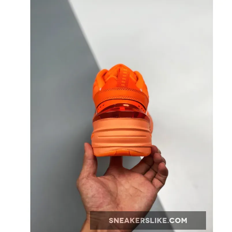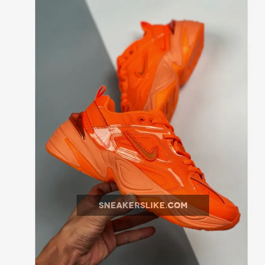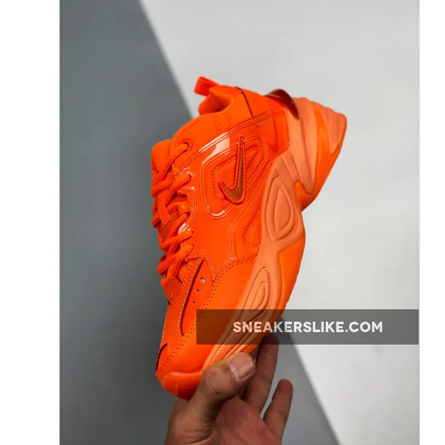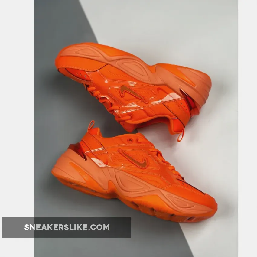It features a full Orange-based upper with a translucent plastic piece on the midfoot overlay.