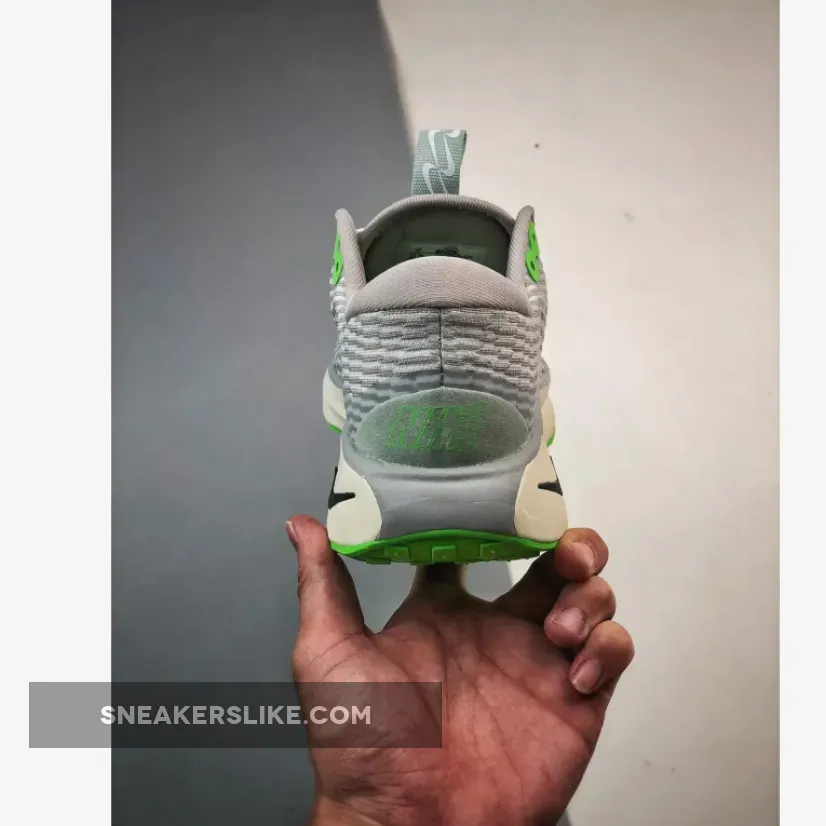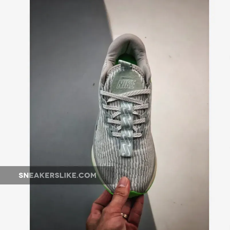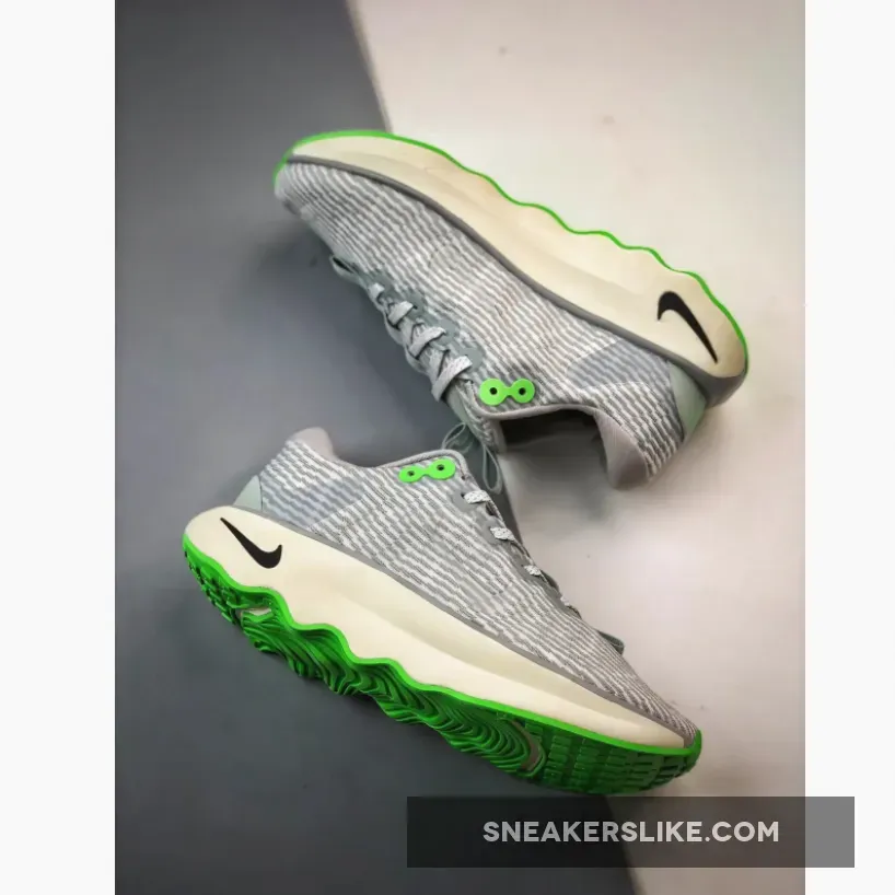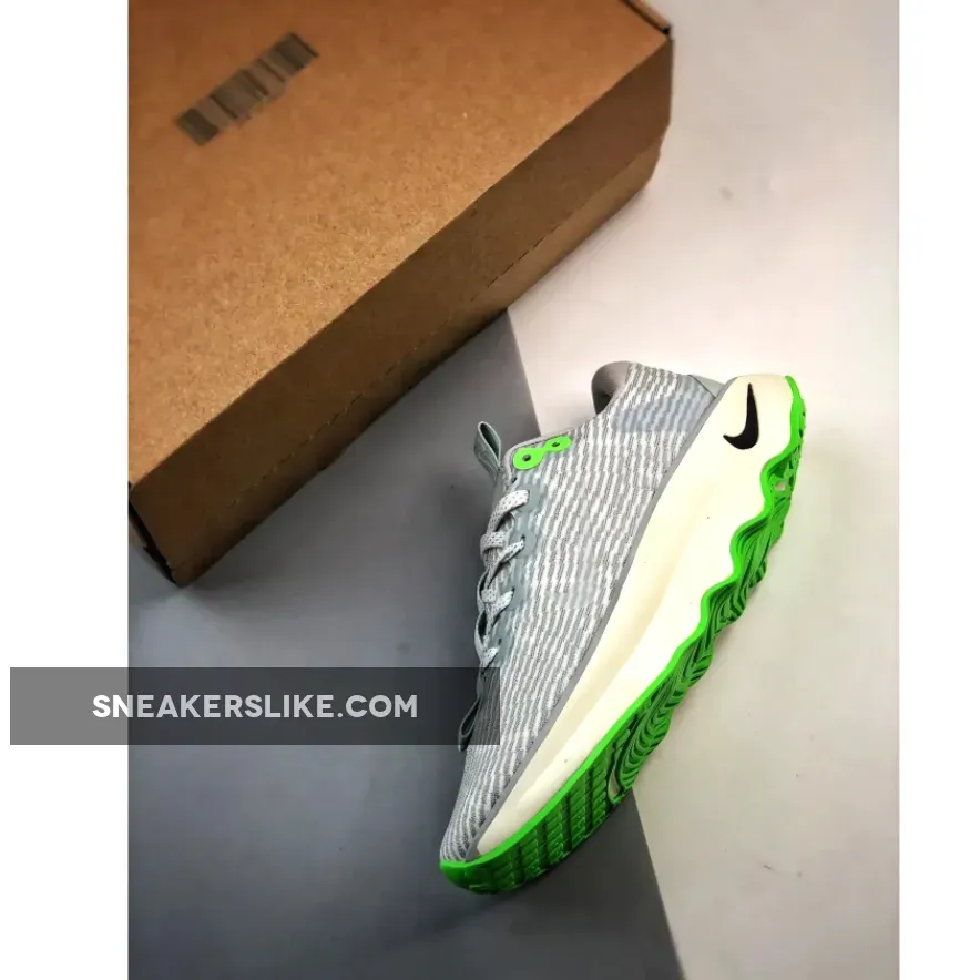 This Motiva starts out with a breathable light silver grey upper with icy semi-translucent TPU signature profile Swooshes embedded on both the medial and lateral mid-panels. The soft foam waterfall collar in grey hugs around the ankle and heel for comfort and a frictionless inner sleeve makes it easy to put on and pull off. A coconut milk-coloured midsole and a green strike rubber outsole featuring uniquely patterned outsole and an exaggerated rocker design round out the look of these kicks.