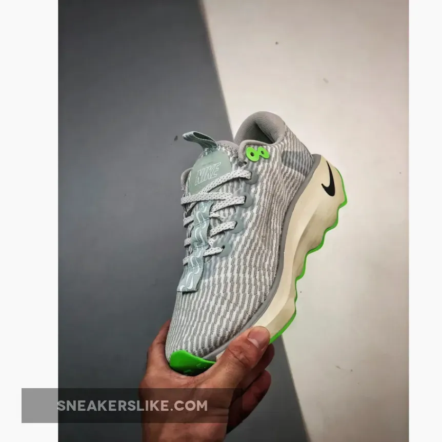 Solid design! Light silver/green combo pops. Soft collar & frictionless sleeve make for comfy fit. Unique midsole & green strike outsole add style points. Perfect for everyday wear & runs. #NikeMotiva #Sneakers #Comfort #Style