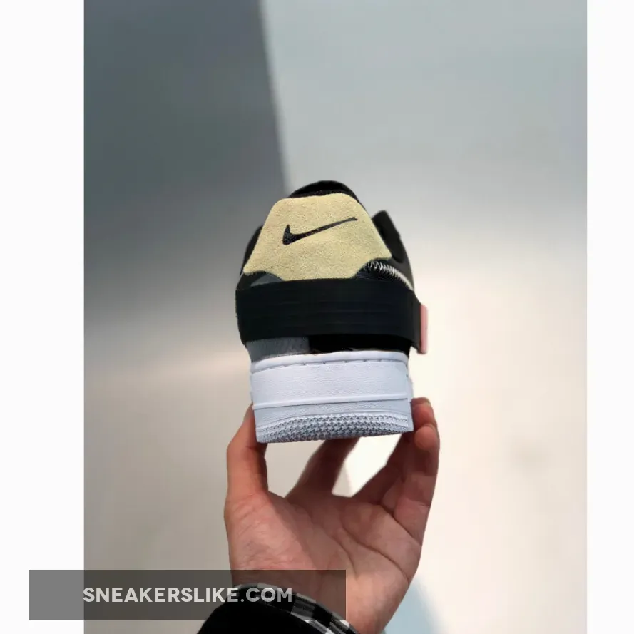 Arriving in a striking black colour scheme, the first thing you’ll notice about the Air Force 1 Low Type Black is the padded foam tongue and velcro strap that wraps around the heel. Exposed stitching and taping give the shoe a deconstructed look, and down below, you’ll find one of the most unique Air midsoles ever. From the heel to the midfoot section, you’ll find an ordinary AF1 midsole, but as you reach towards the toe box, this doubles in size to create a split aesthetic that’s sure to turn heads.