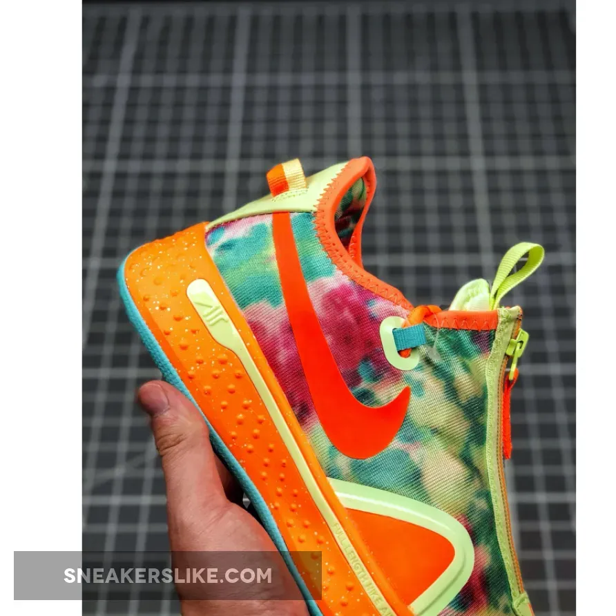 This offering of the Nike PG 4 comes dressed in a tie-dye color blocking that nods to a mix of George’s favorite Gatorade flavors. Orange and Lime Green accents are used throughout completed with Gatorade’s signature lightning bolt logo appearing on the tongues.