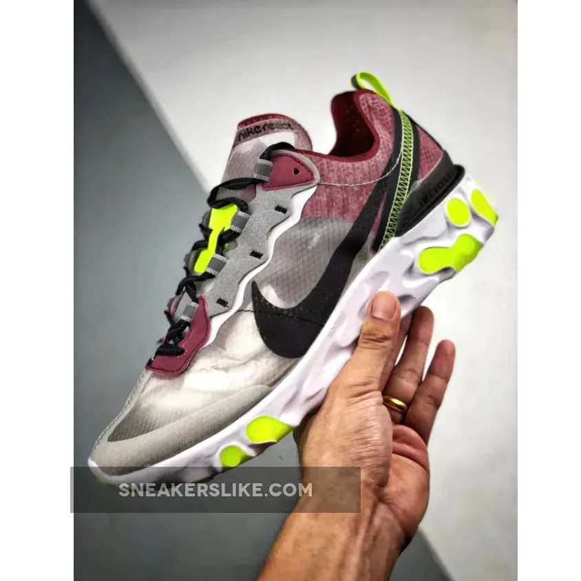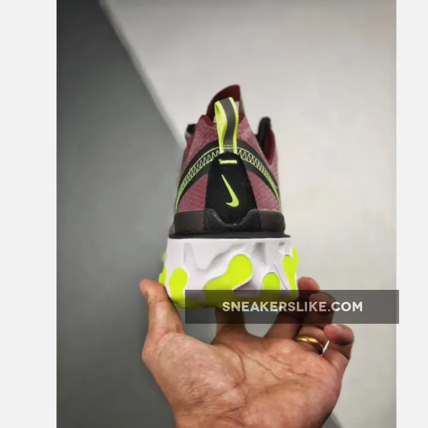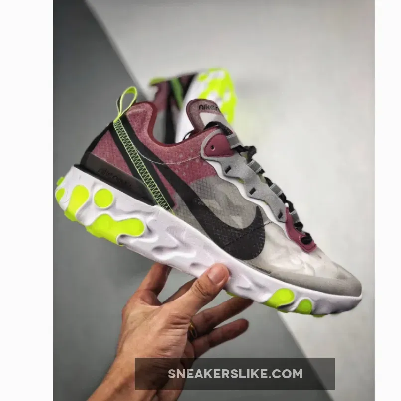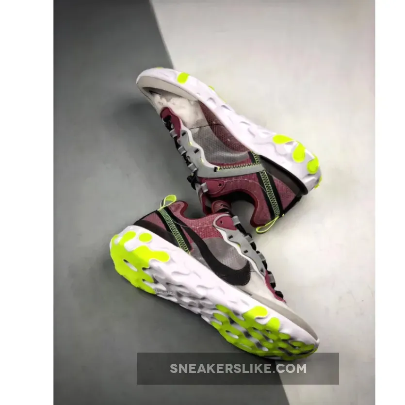 The Nike React Element 87 ‘Desert Sand’ contrasts subdued tones with pops of Volt throughout the upper and the foam midsole. The build features innovative performance attributes, including a computational articulation of Nike React cushioning, on a silhouette made for casual wear. A futuristic aesthetic conveyed by the translucent upper is tempered by familiar elements, including the tongue, toe and heel clip inspired by the Nike Internationalist.