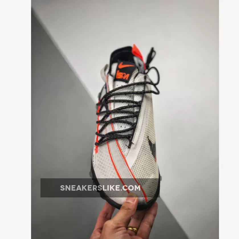 Dubbed “Ghost Aqua” this time around, the pair boasts fittingly seasonal hits of orange scattered throughout its accents with a base of white mesh and taping signing off the pair with the line-up’s patented futurist touch.