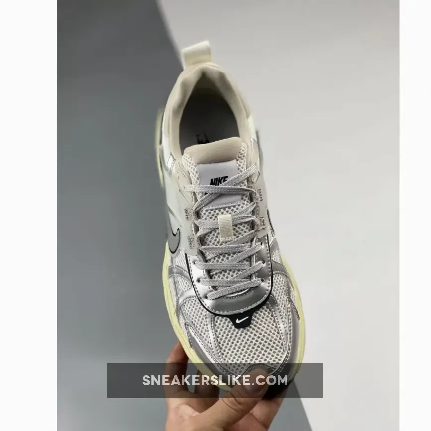 the Nike Runtekk is a new women’s lifestyle model that is inspired by running models from the late 2000s (Y2K-era). This Nike Runtekk comes dressed in a Summit White and Metallic Silver color scheme. Design details on the model include a White open mesh upper gently contrasted by the Metallic Silver leather overlays and semi-translucent cages.