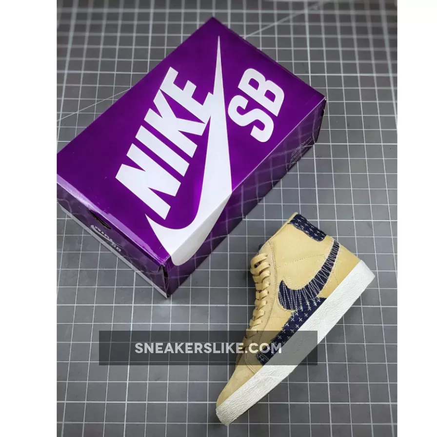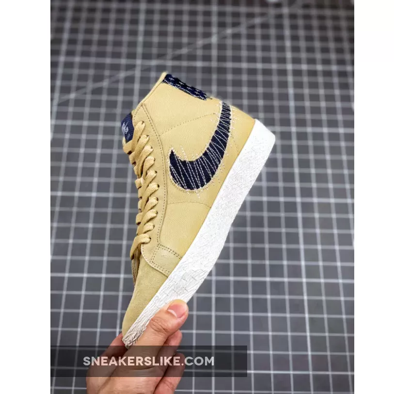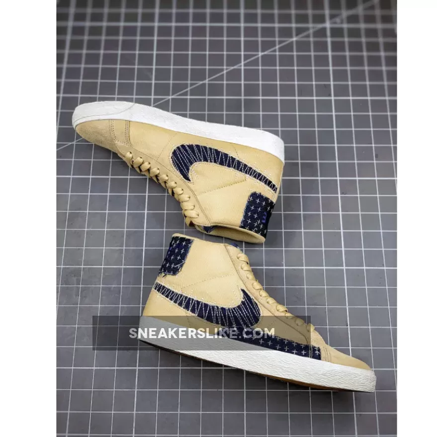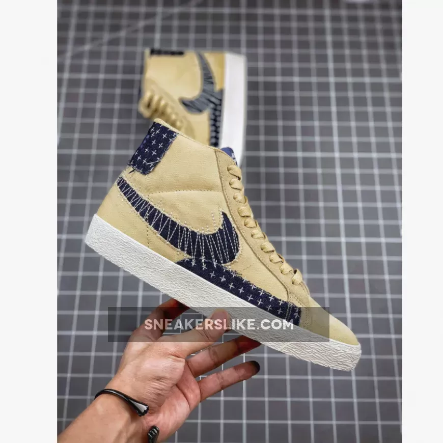 Sashiko, which literally translates to “little stabs,” is a form of decorative reinforcement stitching that originated in Japan around 400 years ago. This offering of the Nike SB Blazer Mid features a Sesame base with Sail DIY-style paneling covered in Sashiko-style stitching.