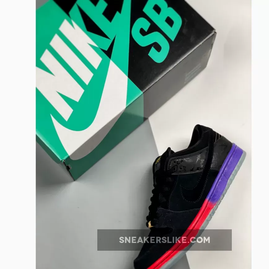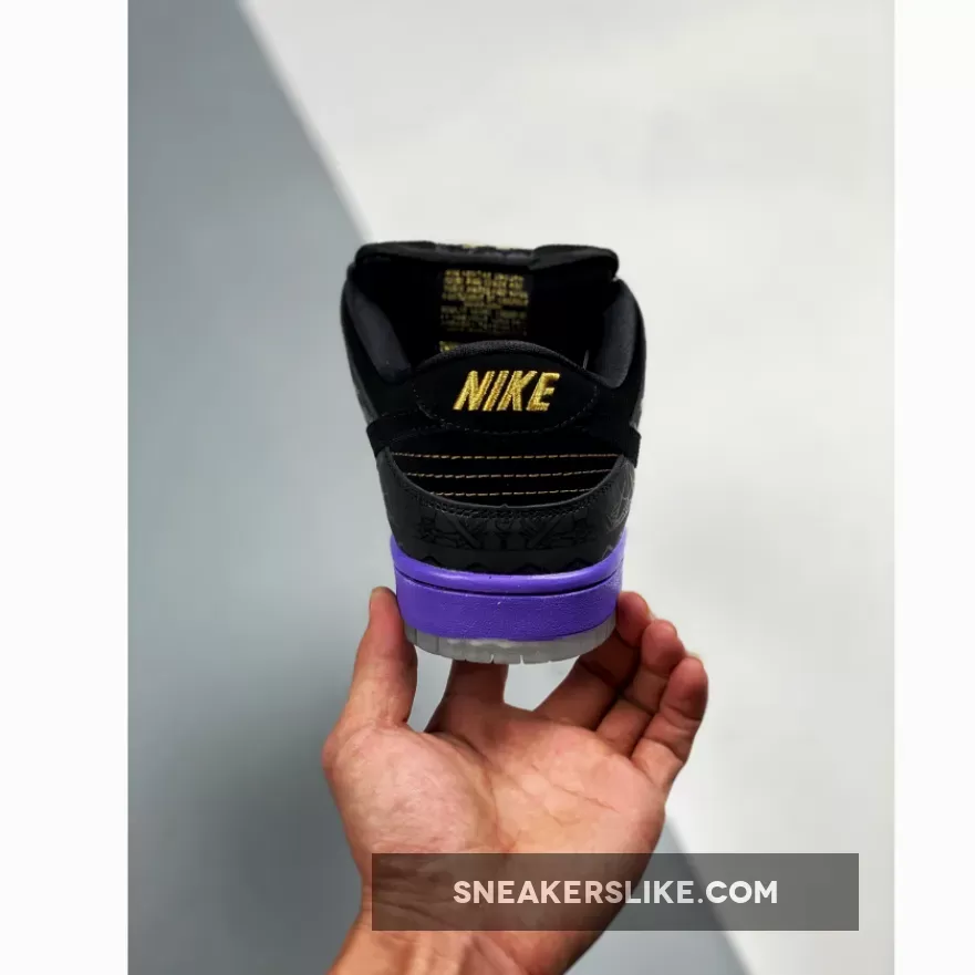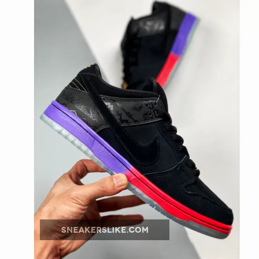 These shoes mark the second time that an SB Dunk has been included as part of this annual pack, and while last year’s “BHM” SB Dunk Low was dressed in black, red, green, and gold, this year’s version is made up of a mostly black upper with two unique features. The first is the reflective graphic on the back quarter panel, and the second is the gradient midsole.
