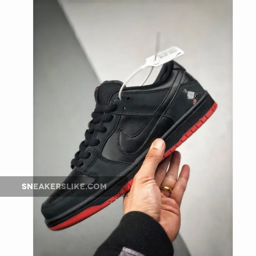 Dressed in a Black and Sienna color scheme. This Nike SB Dunk Low comes in a blank slate of simple Black to “just let the Pigeon be the story,” as Jeff puts it. Coming in a Pink box as a nod to its original era, the “Black Pigeon” represents limitless possibilities for the future of sneaker culture. The iconic Staple Pigeon logo is embroidered on the heels to complete the classic design.