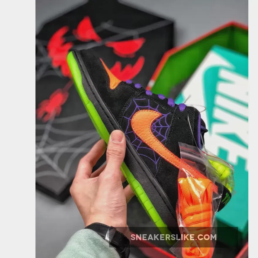 On the run up to Halloween, the Swoosh has just unveiled the Nike SB Dunk Low Night Of Mischief, and it’s a must cop for fans of the spooky season. The creepiest crep that you’ll buy this year, it is chock full of terrifying details but painted in a colour palette that’s surprisingly wearable all year round.Crafted predominantly from buttery smooth suede, the upper of the Dunk Low Night Of Mischief is painted in a stealthy black hue and is contrasted with purple spider web detailing along the lateral and medial side panels. This ghoulish tone extends towards the laces and sock liner, and contrasts perfectly with the pumpkin orange accents that make their way to the Swoosh branding and toe box.Speaking of which, if you haven’t noticed already, the perforations on the vamp form to create a grinning jack-o-lantern, lending to an even scarier vibe.While a lot of brands try to make Halloween inspired kicks and end up just being cheesy as hell, the Nike SB Dunk Low Night Of Mischief is absolutely perfect in what it sets out to do. Set to drop six days before Halloween on October 25th, you need this Nike SB in your life.