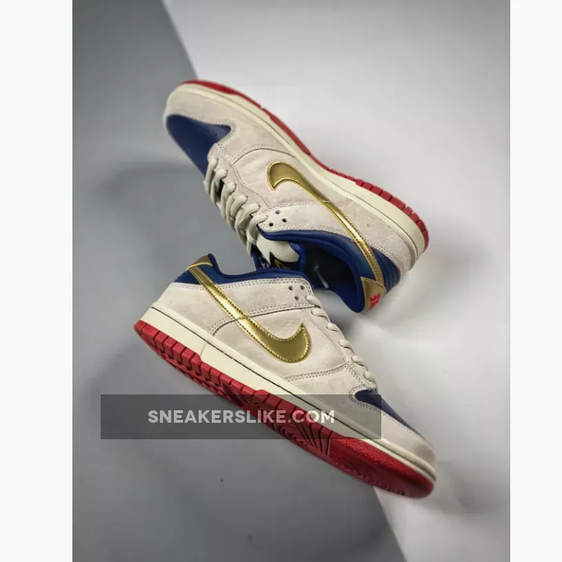 These Nike Dunk SB Low – Pro SB Old Spice are not officially endorsed or licensed by the maker of the nasty smelling aftershave Old Spice, but that hasn’t slowed down every Nike SB head to nickname them so. The Old Spice Dunk Lows are very tame and classy and something about this coloway makes them not so boring. They feature a nice color combination – off-white, red, blue, gold.
