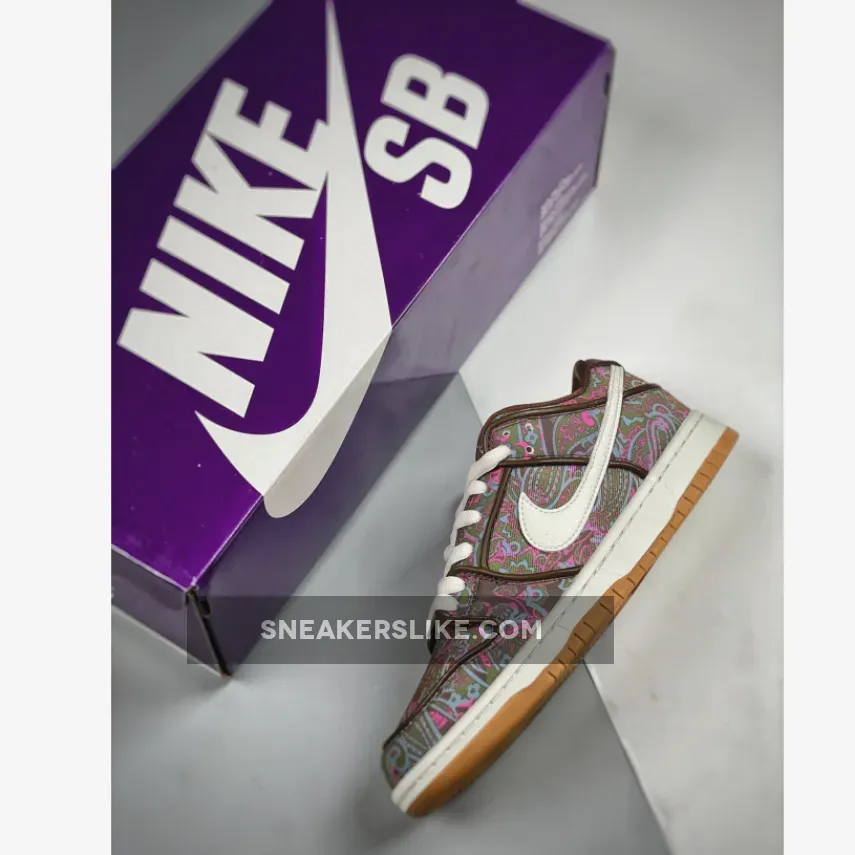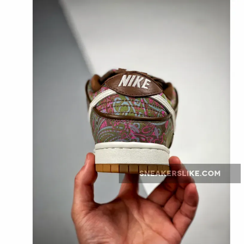 Nike SB Dunk Low Paisley Burgundy is the skateboarding silhouette’s answer to Nike Dunk Low’s “Paisley Pack”. This pair boasts a premium canvas construction that’s decked with a bolder version of the teardrop-shaped pattern. The elegant burgundy base of this SB Dunk Low is designed with chic pink, green and sky blue paisley prints that extend towards the entire tongue and at the heel. Matching the statement-making palette of the upper are matching chocolate-coloured laces and inner lining. In contrast, Swooshes on both the lateral and medial sides sport a colourless hue.