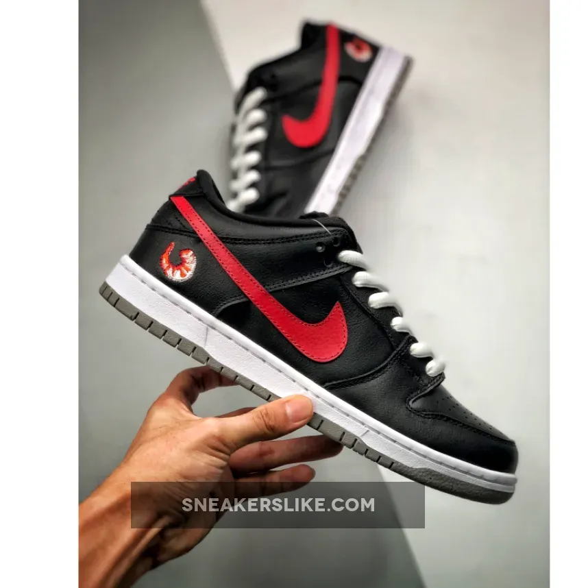 Featuring a basic Black leather upper with a red swoosh, this Nike SB Dunk Low ‘Shrimp’ features a stitched icon of a ‘shrimp’ with a special tongue label of a grill – thus, the ‘shrimp on the barbie’ connection. The phrase itself originated from a series of Australian advertisements in the 80’s, with the signature phrase coming from the actor who would later be remembered as Crocodile Dundee. These SB Dunks also come with a pair of secondary laces that appear to be a light pink tint for further shrimp effect.