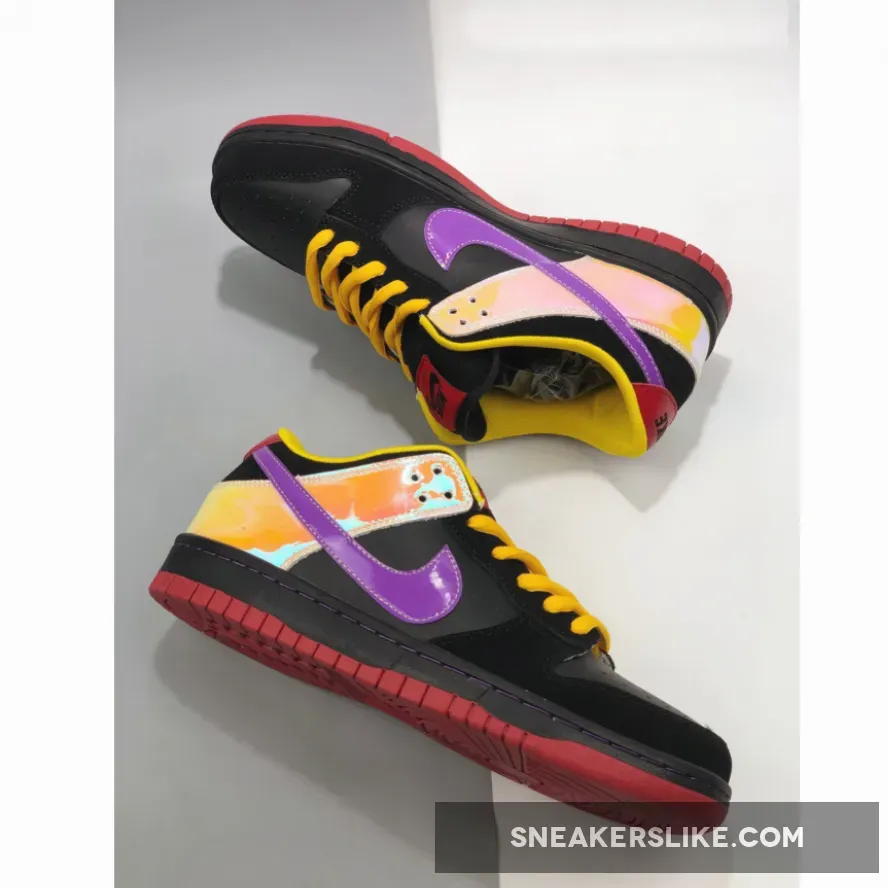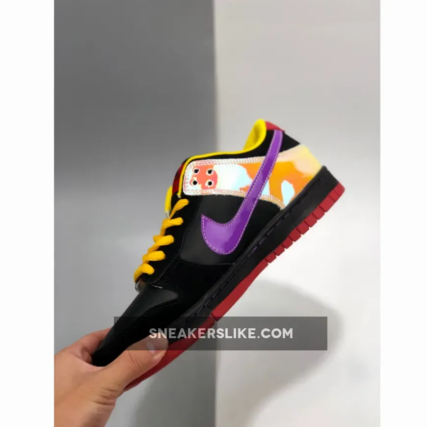 Designers at Nike SB must love 80s rock music, this is the second pair of Dunk SB designed for Guns & Roses. This one is inspired by Guns & Roses’ 1987 debut album Appetite for Destruction. Fans should recognize the red to yellow gradient on the heel.