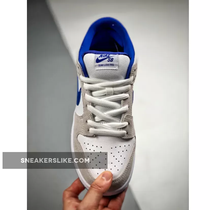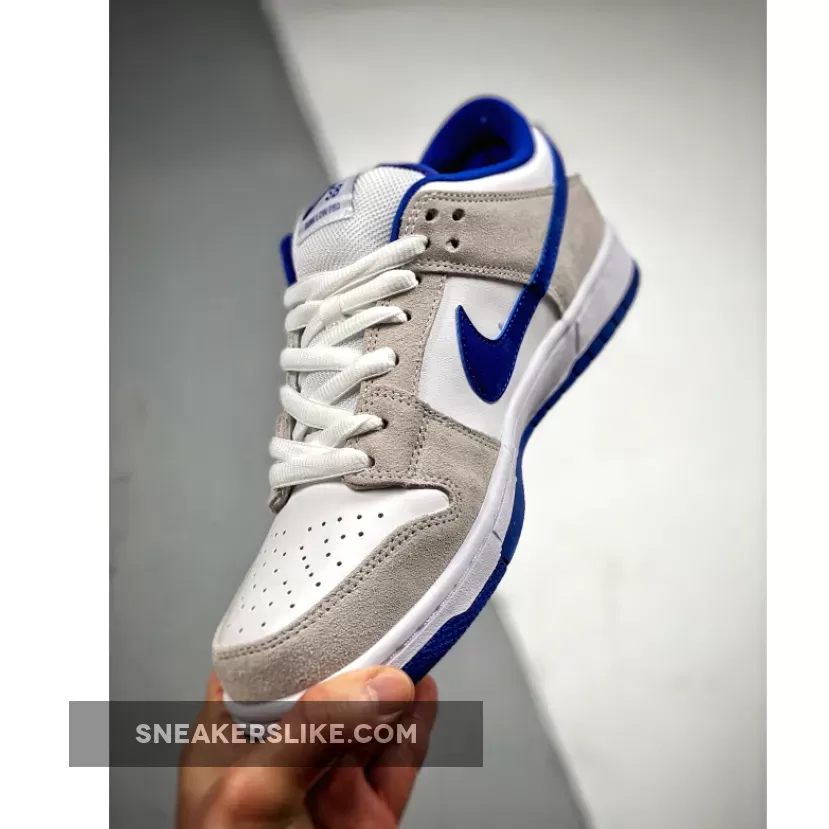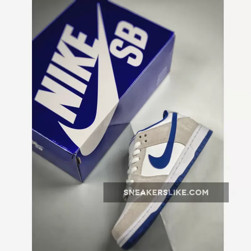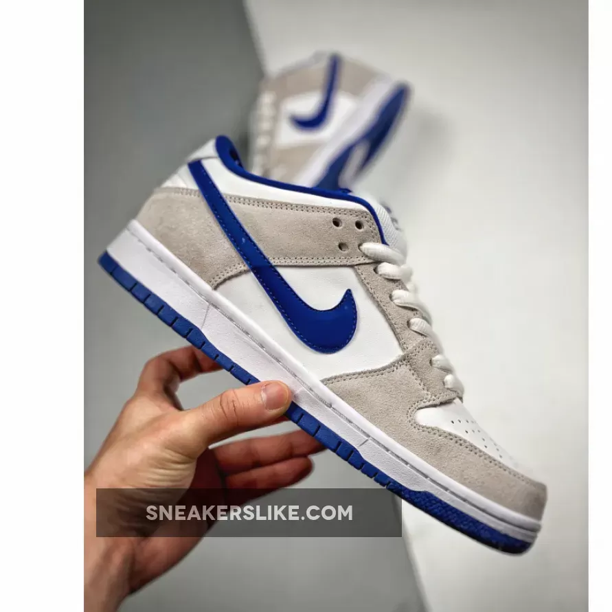 The Nike SB Dunk Low sports a matte silver and white upper that features hits of varsity royal on the outsole, swoosh and lining. Added cushioning is applied to the tongue for better impact absorption.