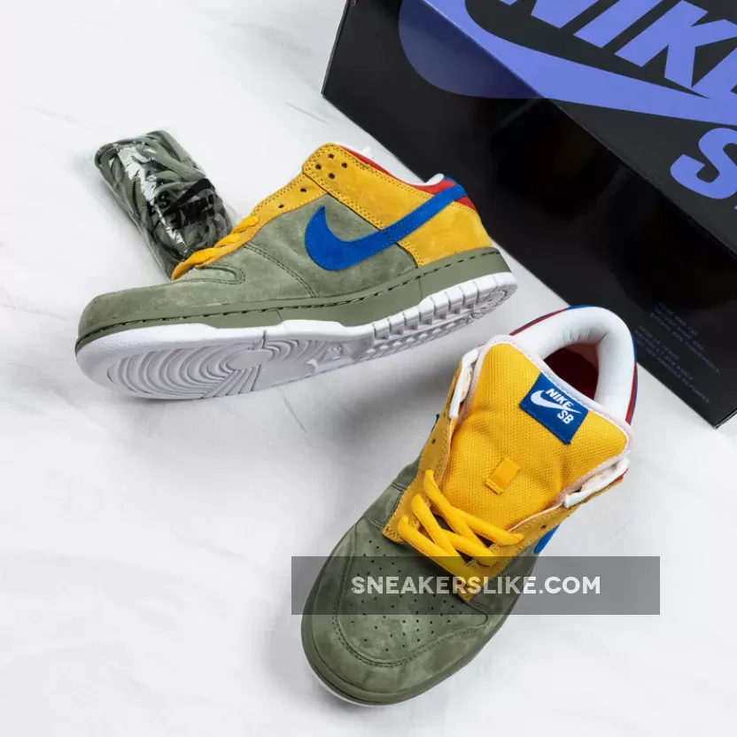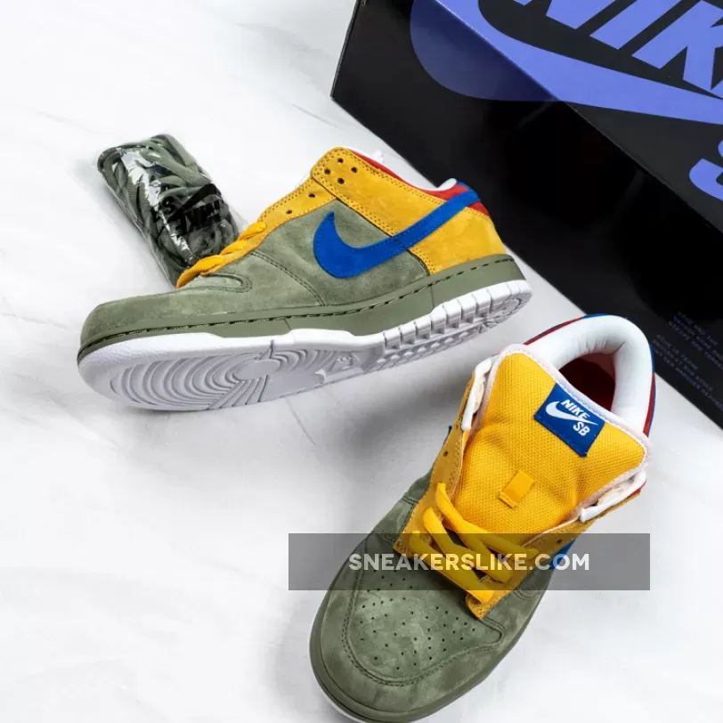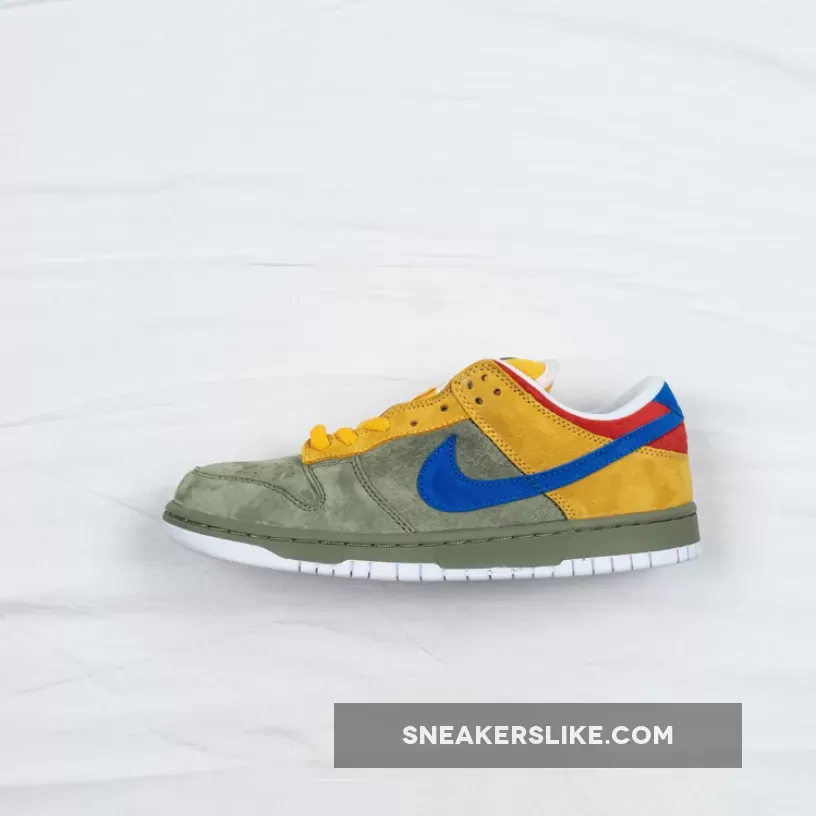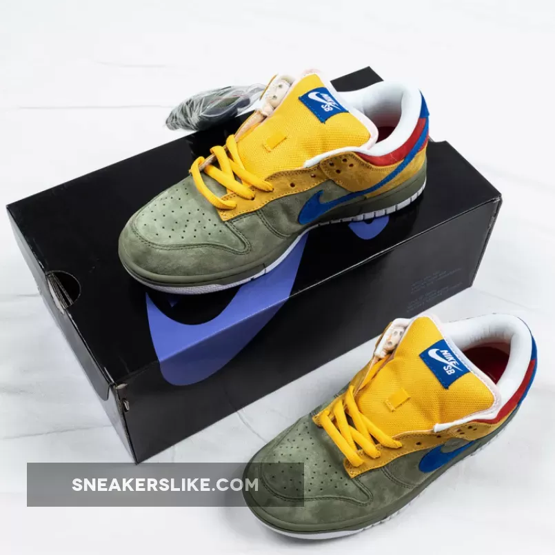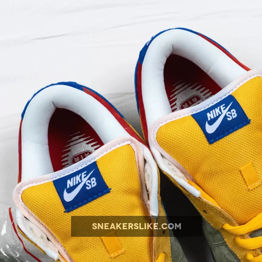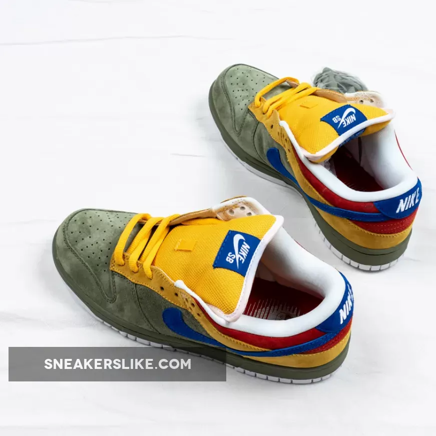 Phenomenal colorway on the SB Dunks! Love the suede material and the subtle nod to the H.R. Pufnstuf character with the red heel. Design is clean and classic, while still paying homage to a nostalgic childhood show. Great work, Nike!