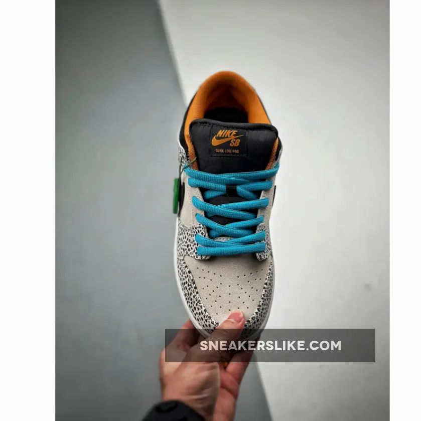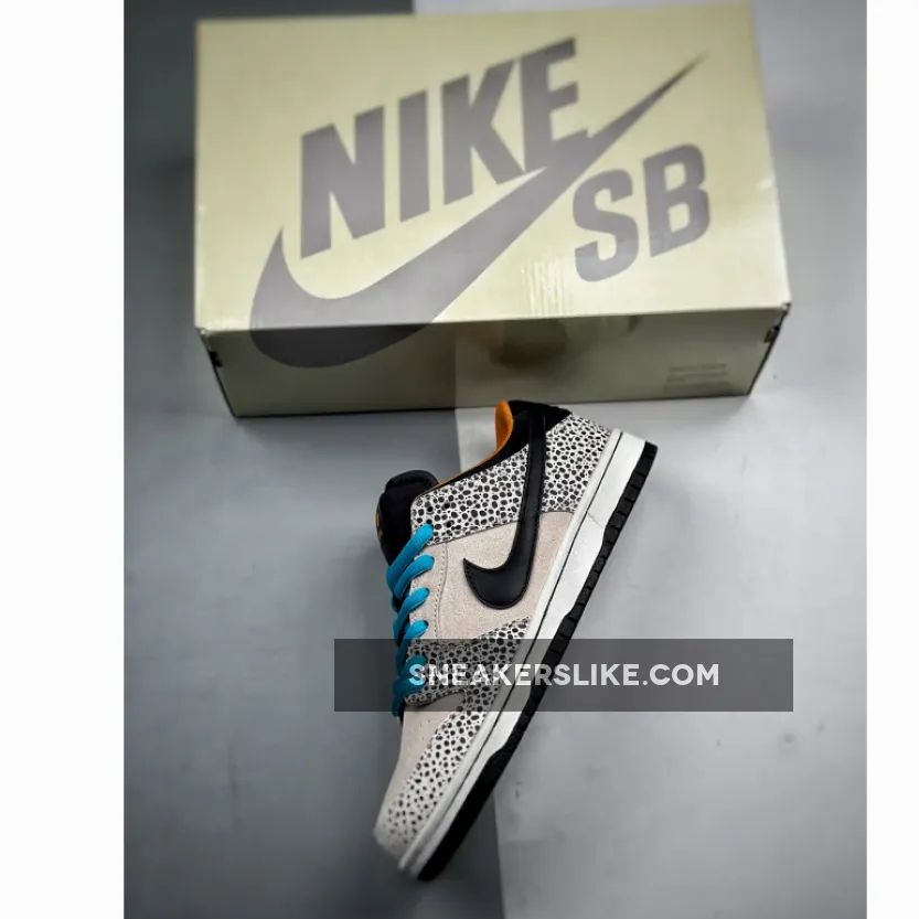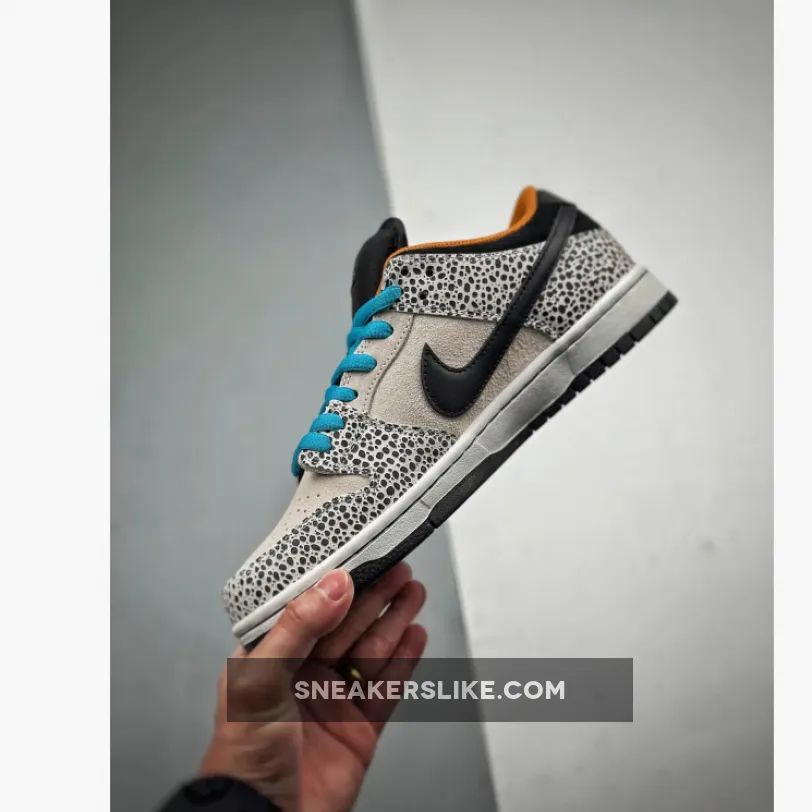 The shoe arrives in a phantom, black, monarch, summit white and chlorine blue color scheme and is constructed out of leather with perforations for added breathability. Mesh tongues and inner lining enhance comfort. Noteworthy are the safari print overlays, providing a distinctive touch. Chlorine Blue laces, Monarch branding, and inner lining add flair. Black tongues, Swoosh logos, heel tabs, and a rubber outsole atop a pristine White midsole.