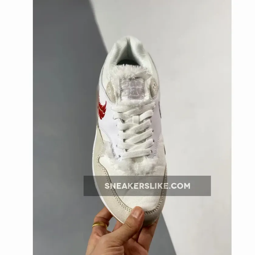The Swoosh brand represents the West Coast, specifically San Francisco, California in this unique Air Max 1 rendition. Rep the Bay Area in this Nike Air Max 1 “The Bay”.Since Nike celebrated Air Max Day in 2014, the Air Max 1 kept re-releasing in beloved and brand-new styles. The shoe is now 36 years strong, but it’s getting more popular this year. Air Max was a game-changing invention from Nike. If the Air Max 1 failed, the entire Air Max range wouldn’t exist today. The Nike Air Max 1 was inspired by the Centre Pompidou in France, giving it an aesthetically-pleasing construction. This running shoe was the pioneer Air Max model, showcasing the visible Air in the heel surrounded by a polyurethane midsole.This colourway shows love for the West Coast and features a white canvas base and a cracked leather mudguard. More materials comprise the upper, fur-like materials adorn the tongue and forefoot. Smooth leather makes up the midfoot overlays where a red embroidered feather Swoosh resides on the lateral panels. Pebbled leather comprises the heel panel. The white Swooshes on the medial section come in croc-like textures. Special “The Bay” branding lands on the tongue, while the sockliner consists of California-inspired graphics.