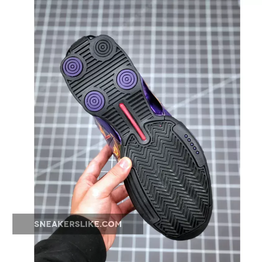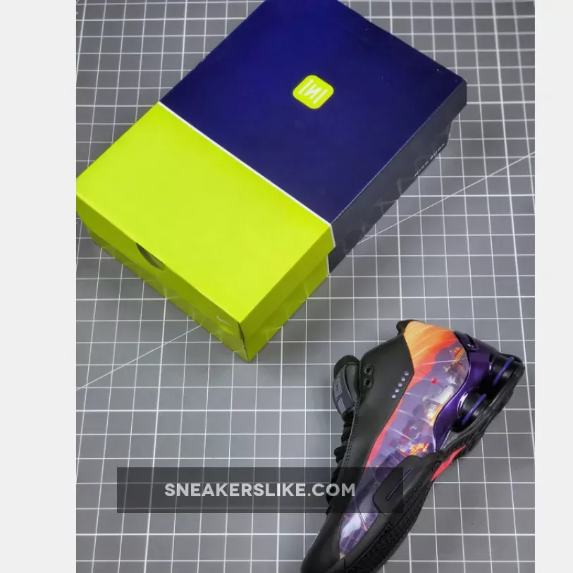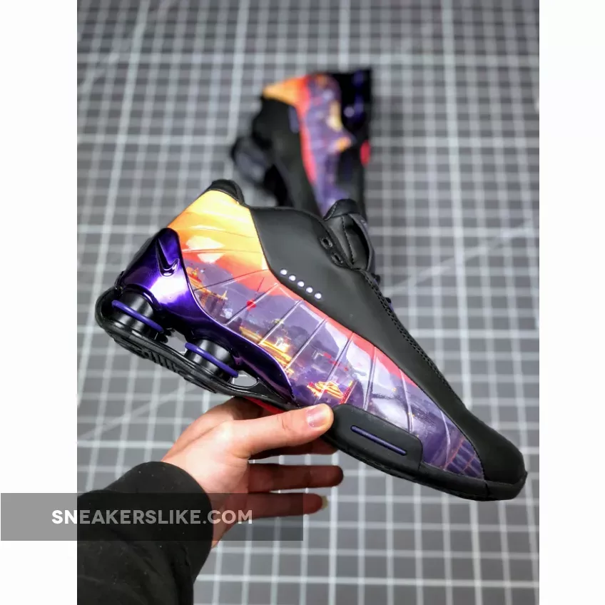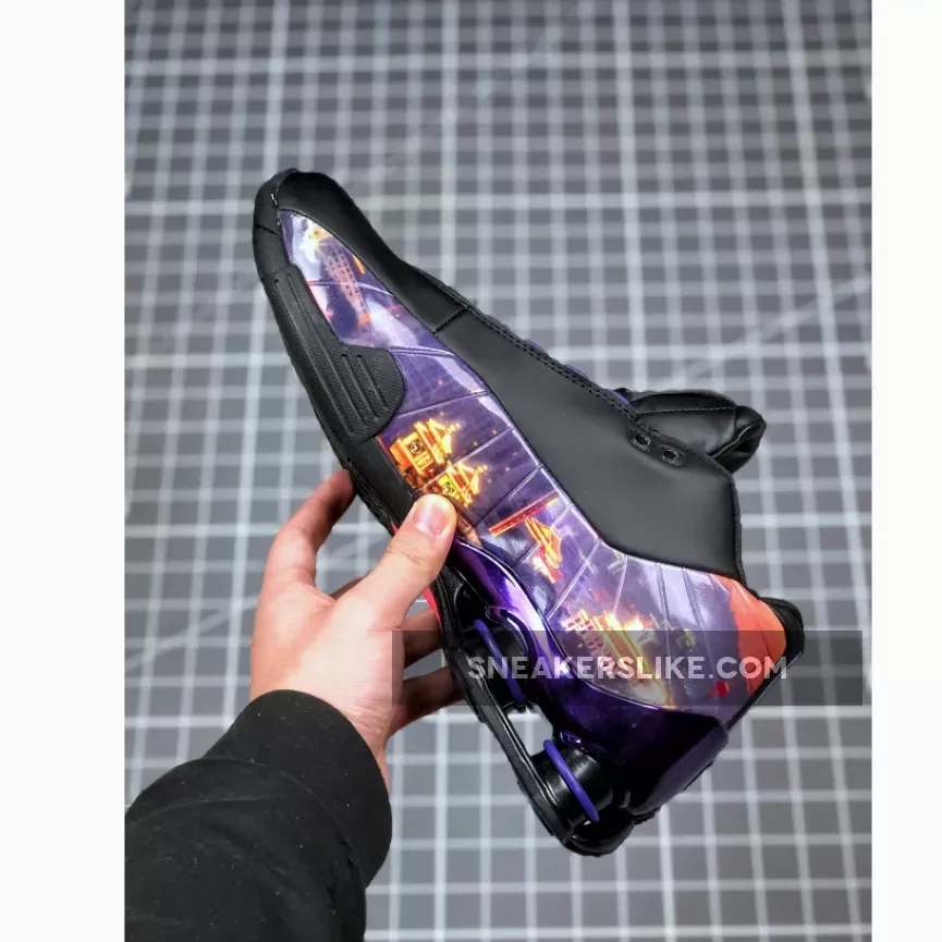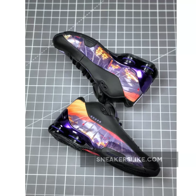 The Nike Shox BB4 comes in a collage pattern that points toward the stylistic influence of early 2000s hoops culture in China, recalling the days of basketball posters and locker-room door customization.