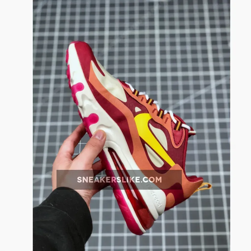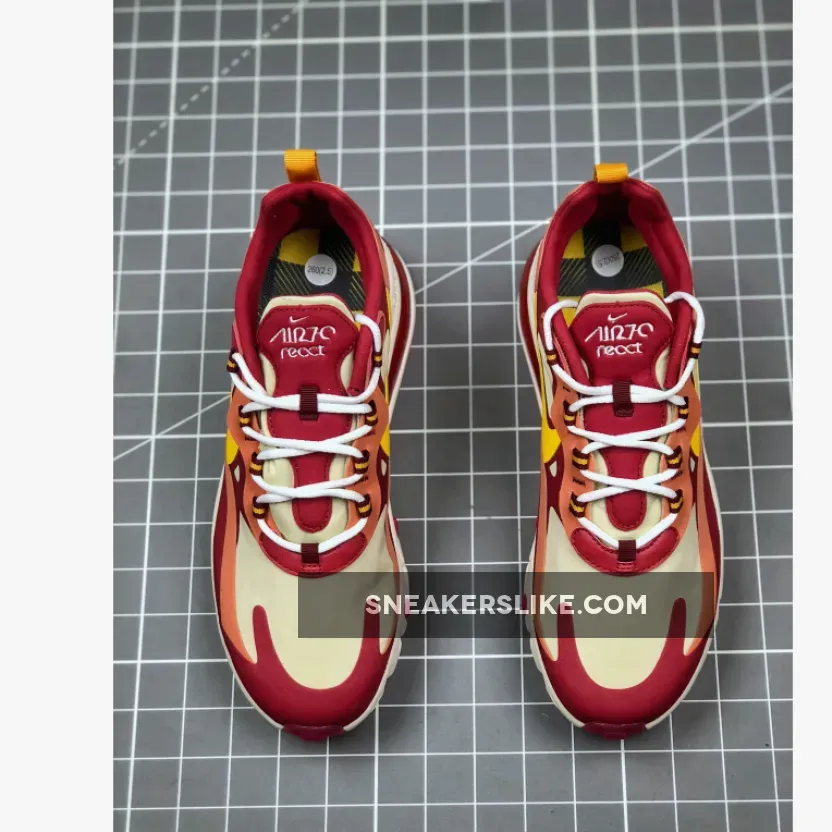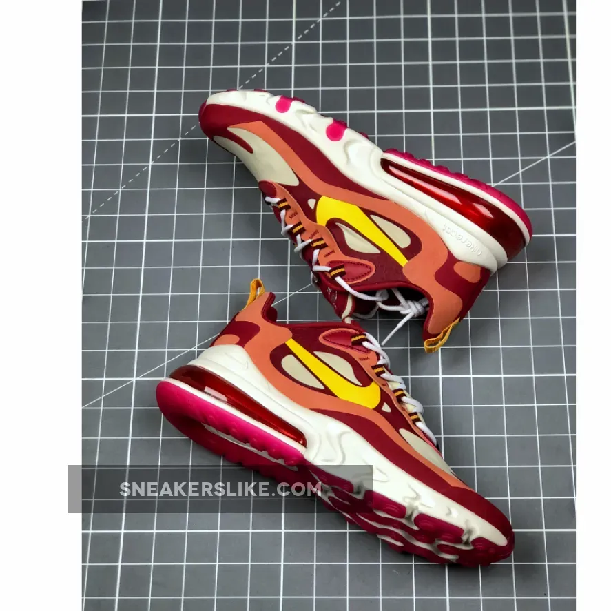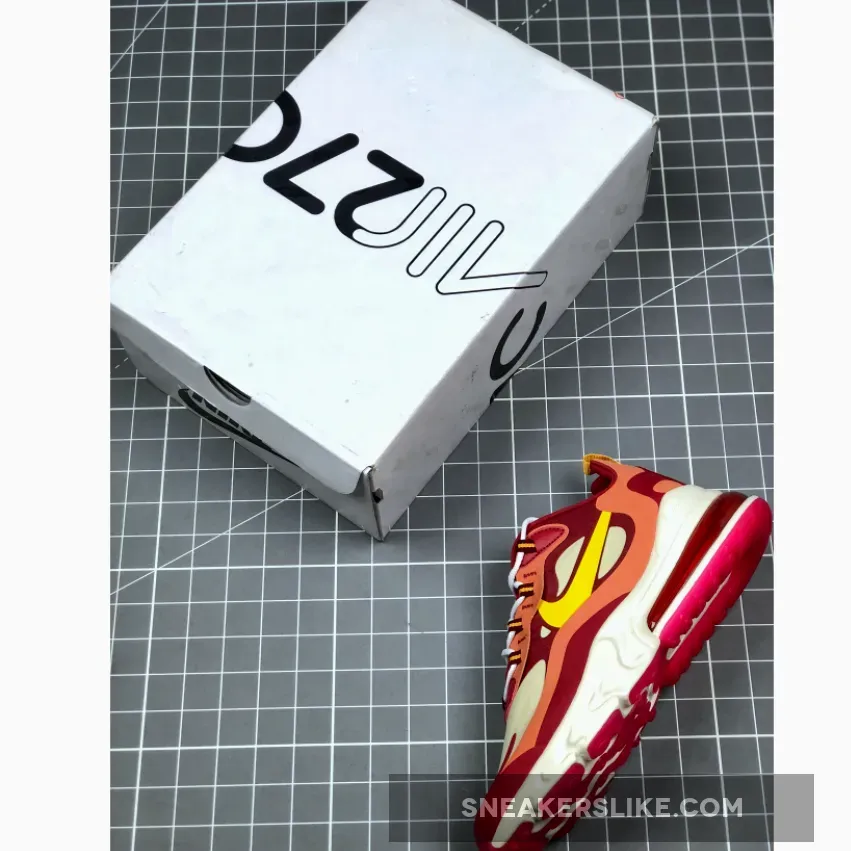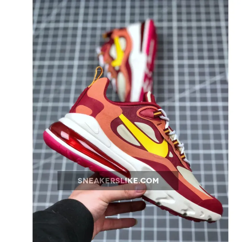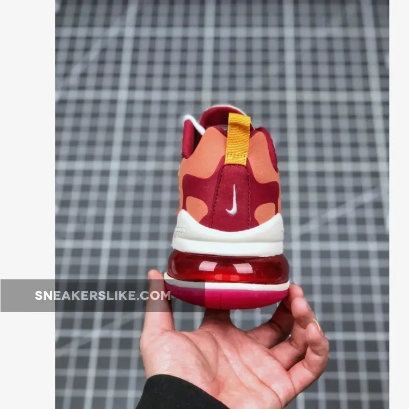 The brand new Nike Air Max 270 React Red Peach is fiery hot. Literally. The latest and greatest colourway to launch as part of the AM270R line, this high heat hybrid is a must cop for any sneaker collection. Made for those who want to inject a vibrant pop of colour into their autumn rotations, if that sounds a bit like you, then this shoe has your name written all over it.Featuring the revolutionary no-sew upper that caught the imaginations of sneakerheads earlier this year, the Air Max 270 React Red Peach is painted in various shades of red and touched up with cream accents across the laterals, medials and the toe box. A striking yellow Swoosh shoots across the side panels, and this is complemented by the eyestays that help tie the shoe together.Now, you can’t talk about this new shoe without mentioning its innovative silhouette. With React foam at the front, the heel is made from an Air bubble for twice the comfort and response. This is lined with a cherry red rubber outsole, finalising the design.October 21st is the date you need to remember if you want the Nike Air Max 270 React Red Peach in your personal collection. While it may not sell out instantly, these popular sizes are going to fly off the shelves, so make sure you grab yours while it’s in stock.
