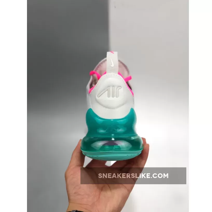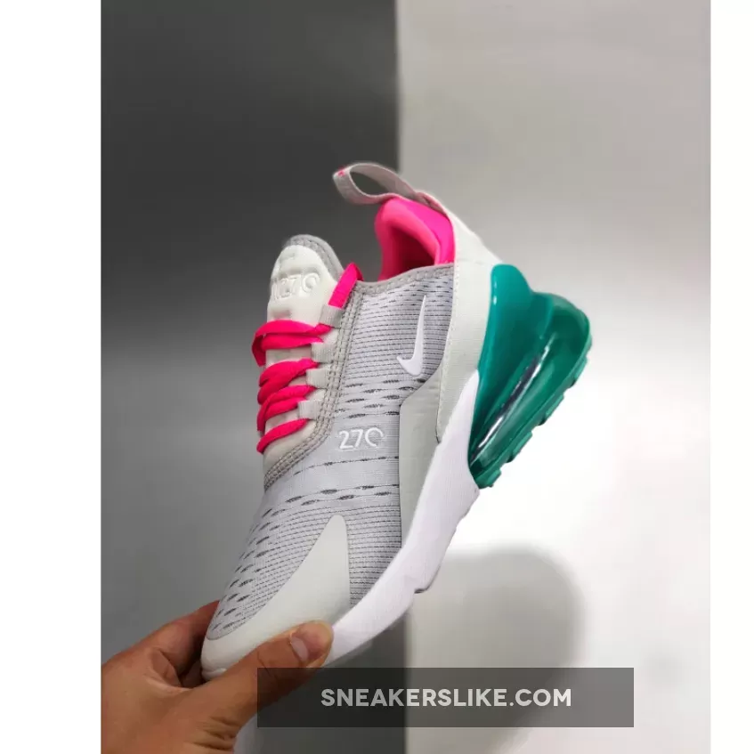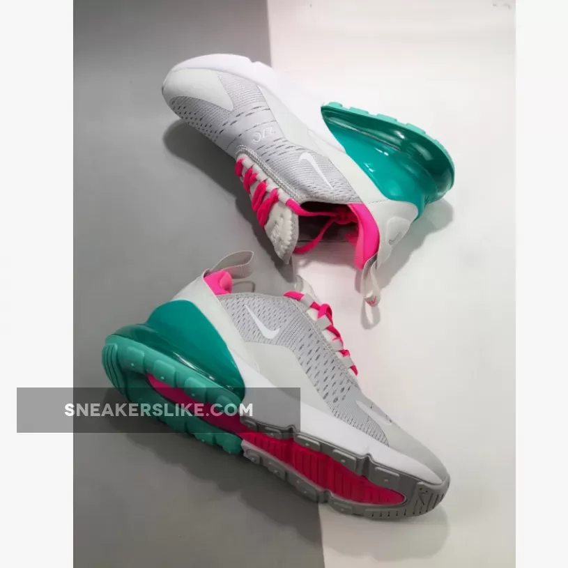 this season appearing on classic silhouettes such as the Air Max 90, Air Max 98, and Air Max 95. Now transferring its tropical elements to one of Nike’s more modern models, the Floridian neons of pink and teal are now arriving on this upcoming rendition of the Air Max 270. In similar fashion to the previously revealed makeovers, the base its kept to a minimum opting for a clean light grey mesh build, allowing the vibrance of the Miami-inspired accents present on the laces, sock liners, and Air-infused cushioning units to steal the show.