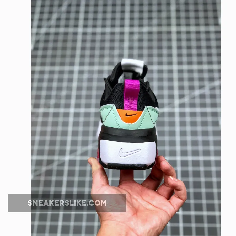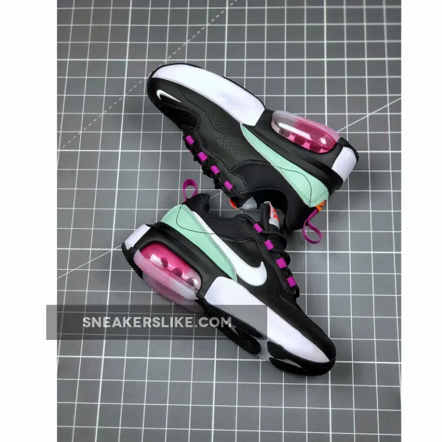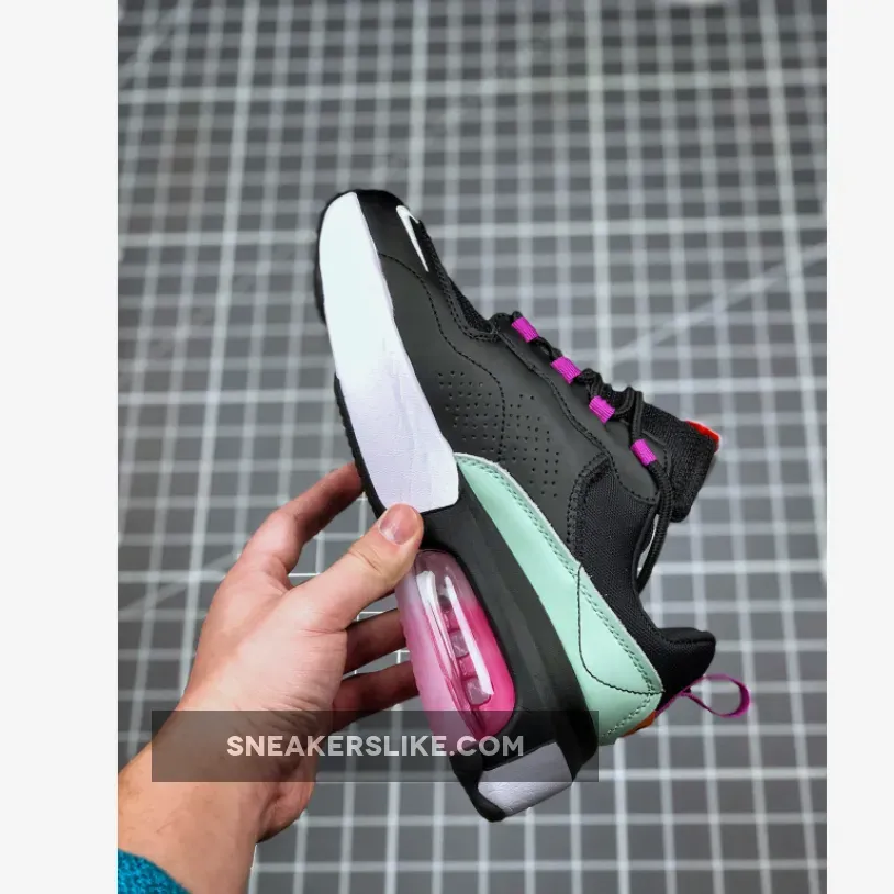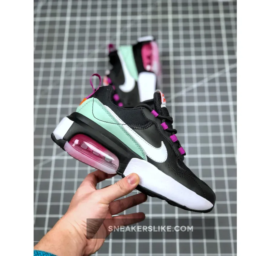 Dressed in a Black, Summit White and Fire Pink color combination. Black mesh and leather lands on the upper while White is applied to the Swoosh across the panels. A pastel shade of Green lands on the leather overlays by the heel and Pink hits the lace loops, heel tab, insoles and Air unit. Completing the look is Orange on the tongue and heel.