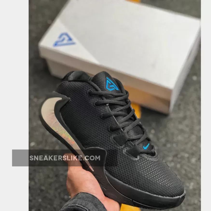 Dressed in a Black, Multi-Color, and Photo Blue color scheme. This Nike Zoom Freak 1 features an all-Black upper highlighted with an Iridescent backwards Swoosh logo.