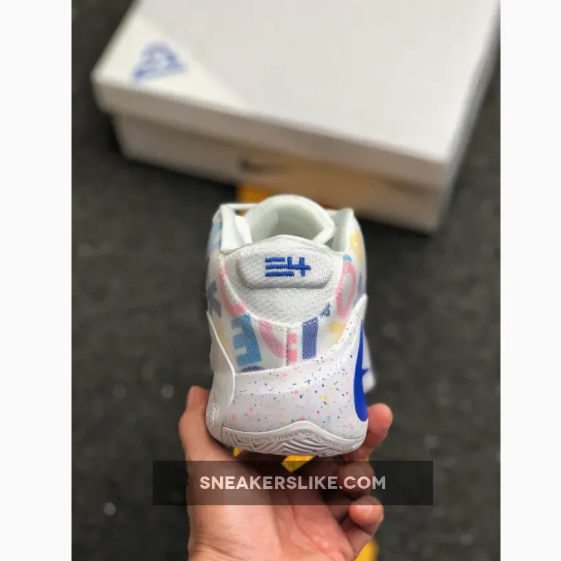 This special edition of the Freak 1 is highlighted with colorful letters covering the entire upper from the Greek Freak’s long and often misspelled name.